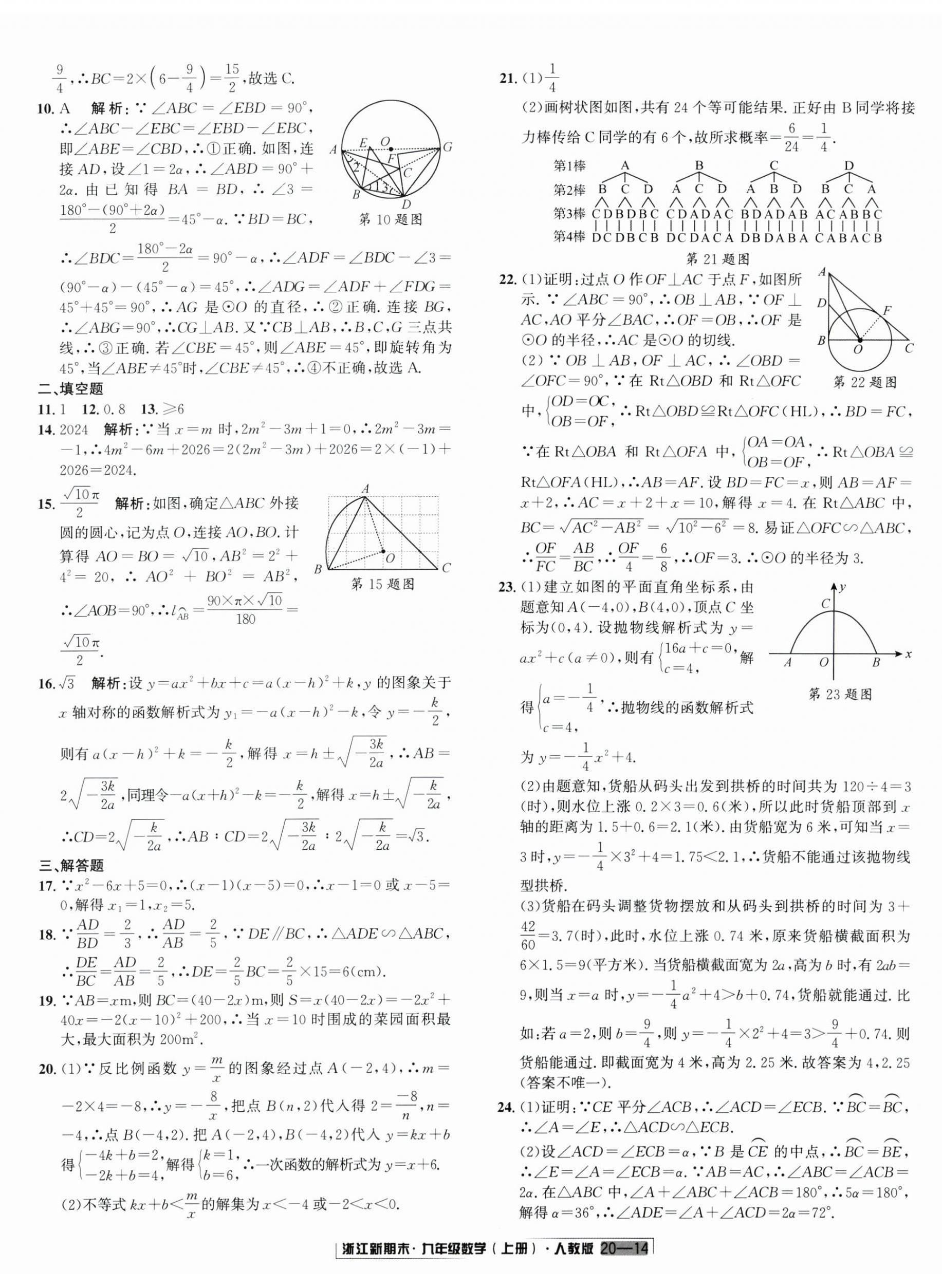 注:目前有些书本章节名称可能整理的还不是很完善,但都是按照顺序排列的,请同学们按照顺序仔细查找。练习册 2024年励耘书业浙江新期末九年级数学上册人教版 答案主要是用来给同学们做完题方便对答案用的,请勿直接抄袭。