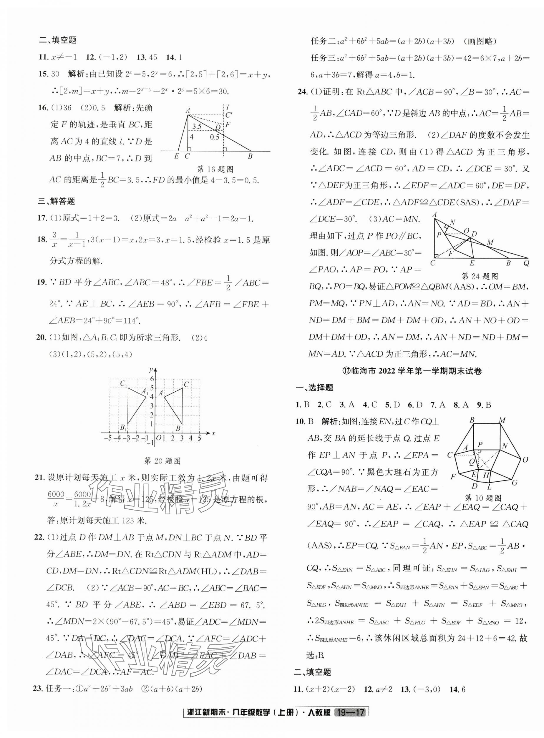 注:目前有些书本章节名称可能整理的还不是很完善,但都是按照顺序排列的,请同学们按照顺序仔细查找。练习册 2024年励耘书业浙江新期末八年级数学上册人教版 答案主要是用来给同学们做完题方便对答案用的,请勿直接抄袭。