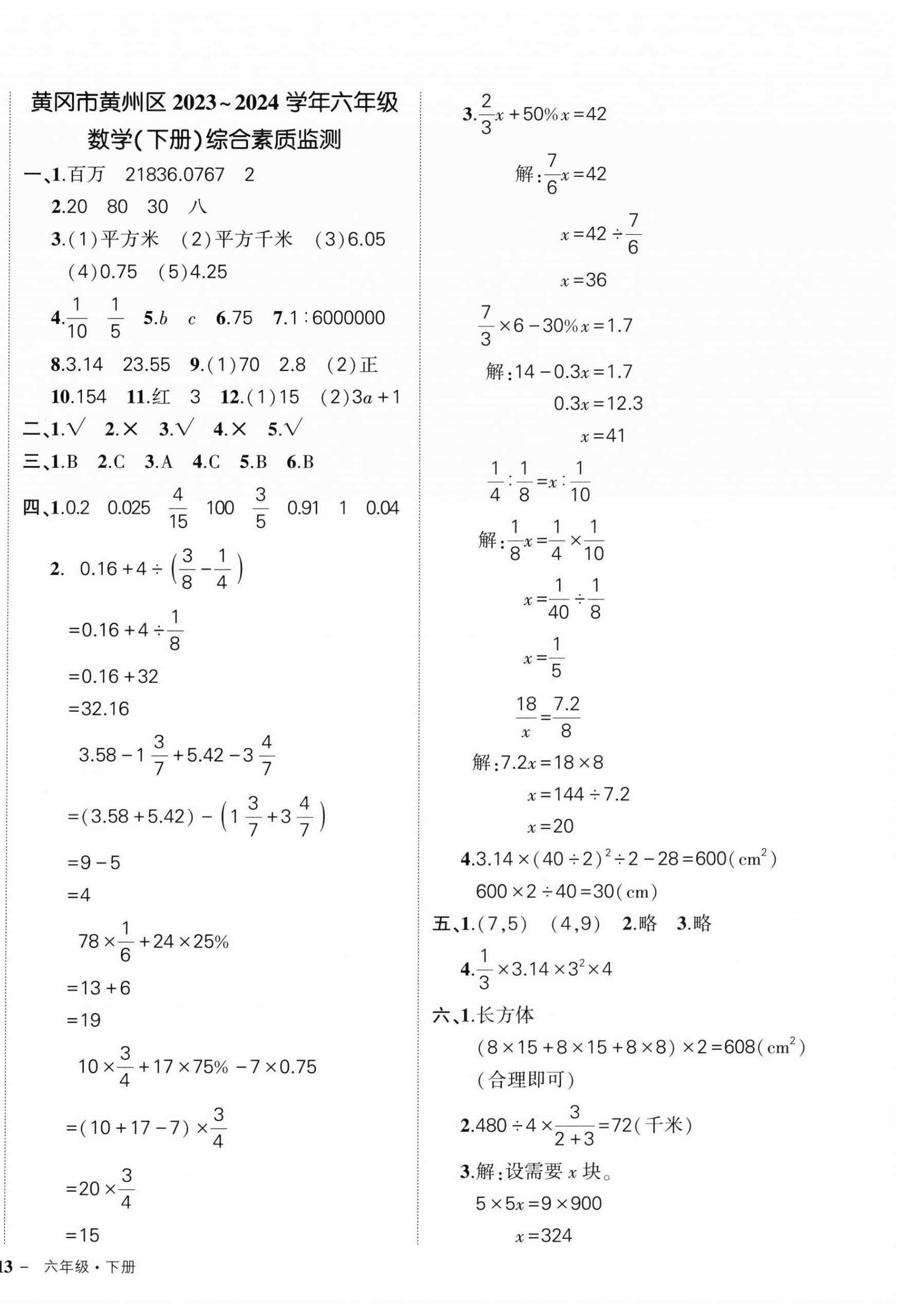 2025年状元成才路创优作业100分六年级数学下册人教版湖北专版