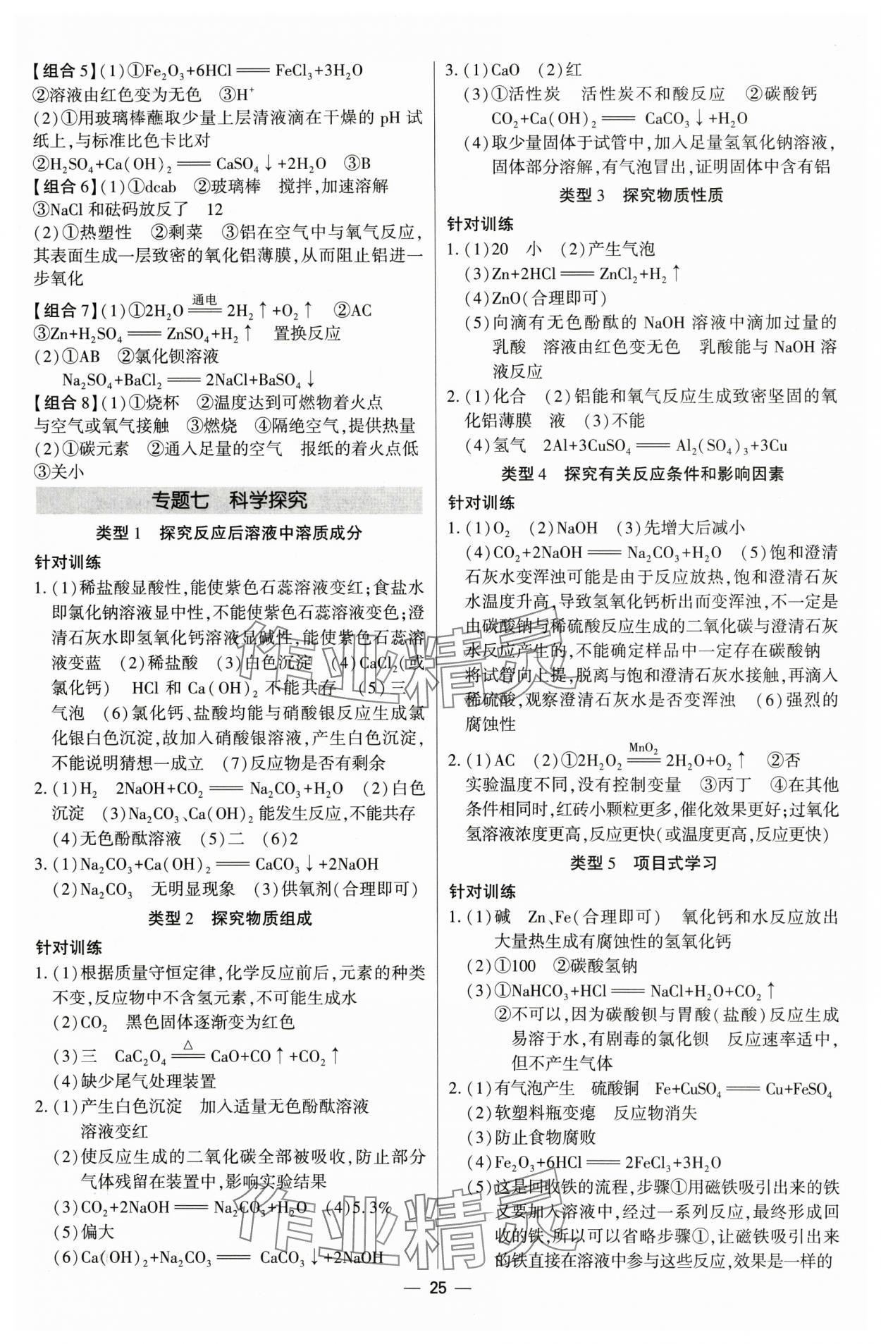 注:目前有些书本章节名称可能整理的还不是很完善,但都是按照顺序排列的,请同学们按照顺序仔细查找。练习册 2025年直击中考初中全能优化复习化学内蒙古专版 答案主要是用来给同学们做完题方便对答案用的,请勿直接抄袭。
