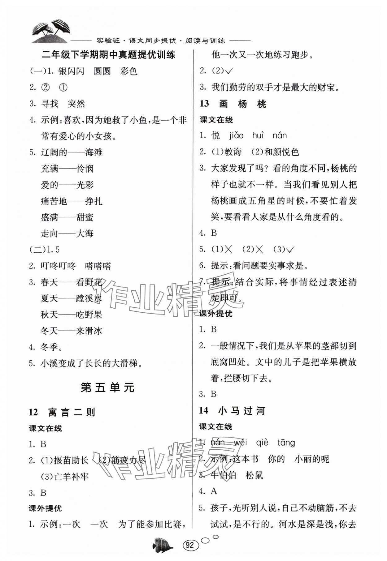 注:目前有些书本章节名称可能整理的还不是很完善,但都是按照顺序排列的,请同学们按照顺序仔细查找。练习册 2025年实验班语文同步提优阅读与训练二年级人教版 答案主要是用来给同学们做完题方便对答案用的,请勿直接抄袭。