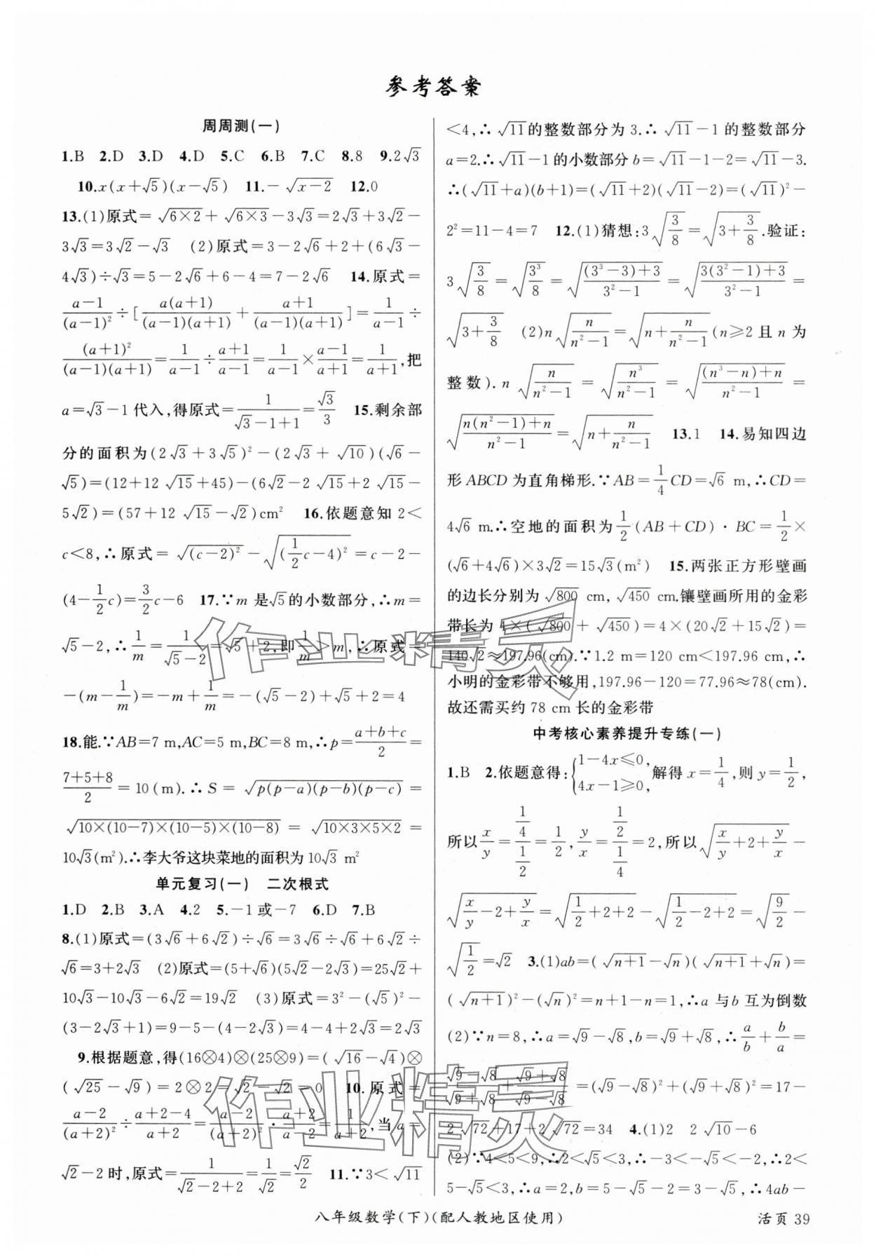注:目前有些书本章节名称可能整理的还不是很完善,但都是按照顺序排列的,请同学们按照顺序仔细查找。练习册 2025年原创新课堂八年级数学下册人教版 答案主要是用来给同学们做完题方便对答案用的,请勿直接抄袭。