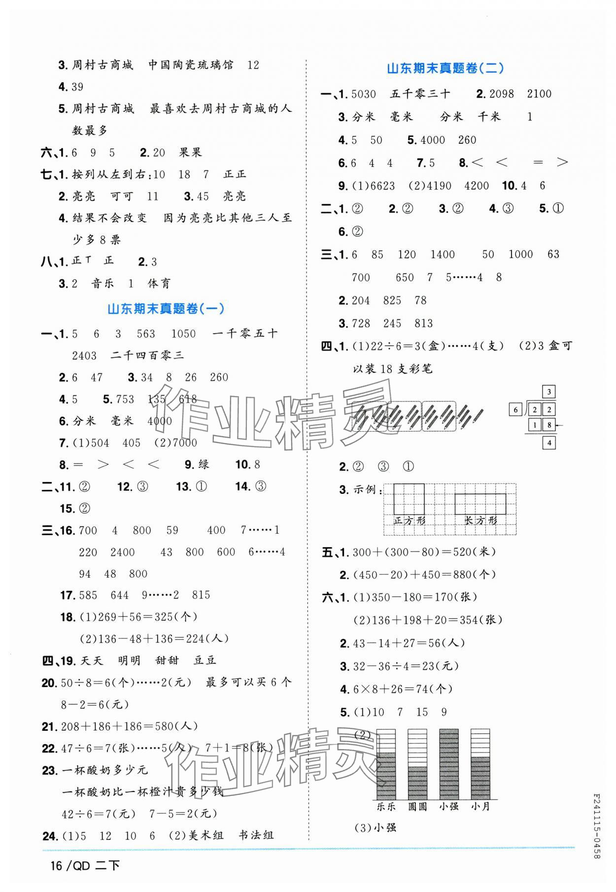 注:目前有些书本章节名称可能整理的还不是很完善,但都是按照顺序排列的,请同学们按照顺序仔细查找。练习册 2025年阳光同学课时优化作业二年级数学下册青岛版山东专版 答案主要是用来给同学们做完题方便对答案用的,请勿直接抄袭。