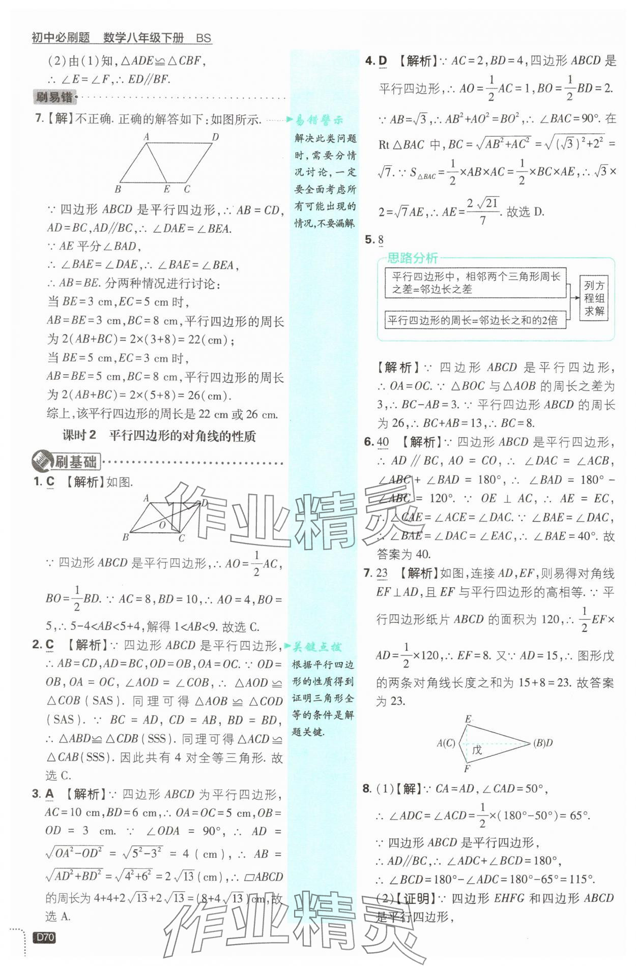注:目前有些书本章节名称可能整理的还不是很完善,但都是按照顺序排列的,请同学们按照顺序仔细查找。练习册 2025年初中必刷题八年级数学下册北师大版 答案主要是用来给同学们做完题方便对答案用的,请勿直接抄袭。
