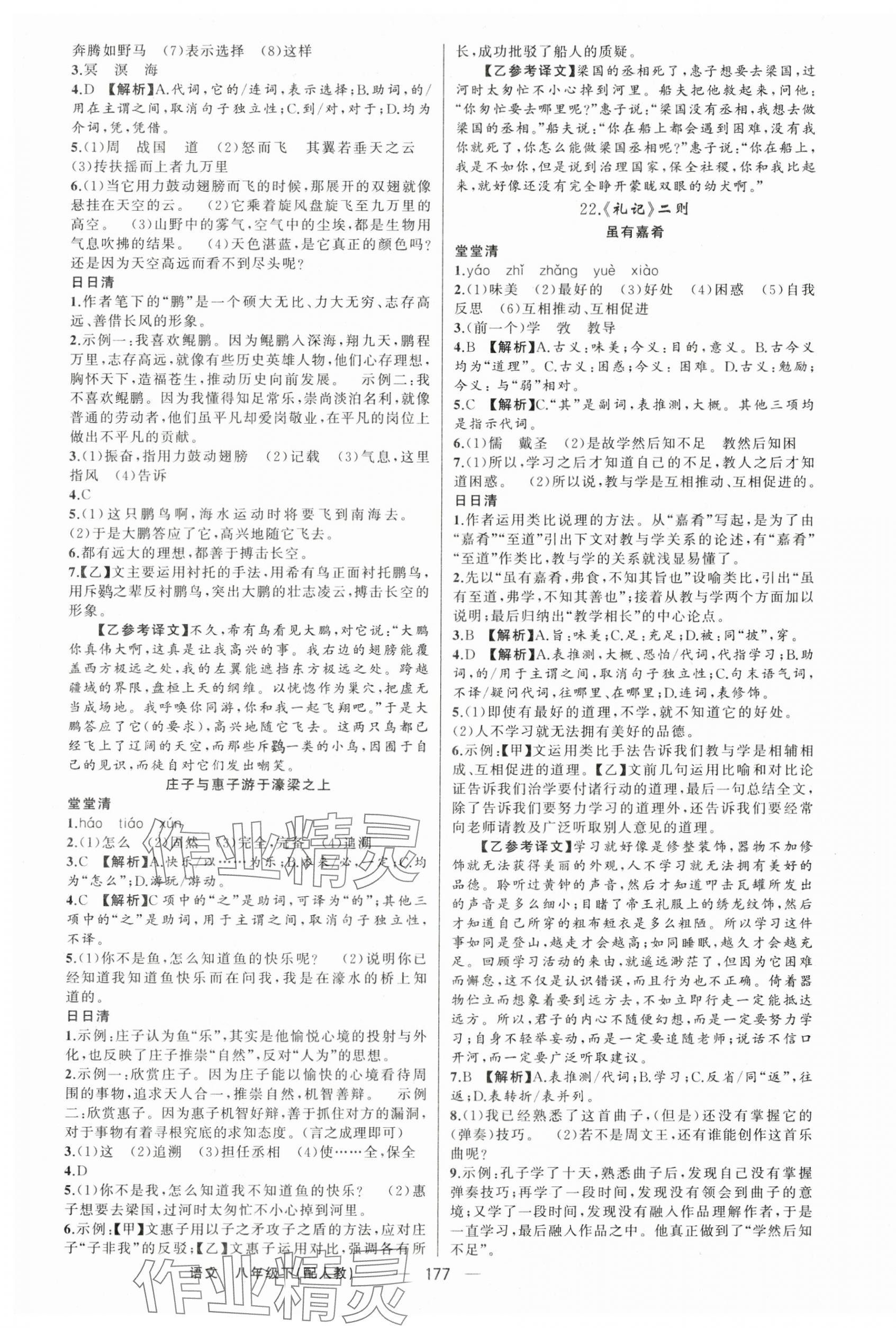 注:目前有些书本章节名称可能整理的还不是很完善,但都是按照顺序排列的,请同学们按照顺序仔细查找。练习册 2025年四清导航八年级语文下册人教版 答案主要是用来给同学们做完题方便对答案用的,请勿直接抄袭。