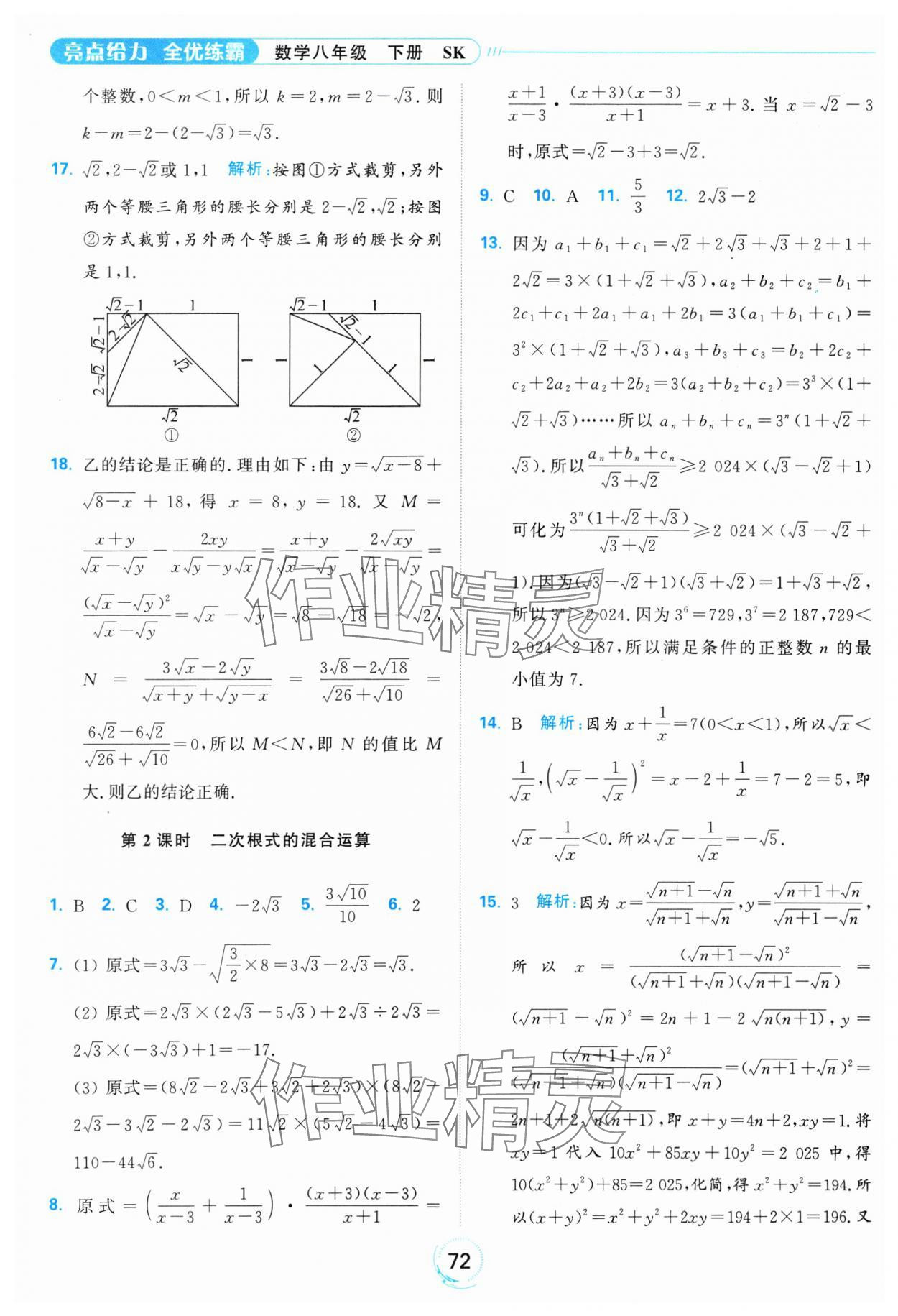 注:目前有些书本章节名称可能整理的还不是很完善,但都是按照顺序排列的,请同学们按照顺序仔细查找。练习册 2025年亮点给力全优练霸八年级数学下册苏科版 答案主要是用来给同学们做完题方便对答案用的,请勿直接抄袭。
