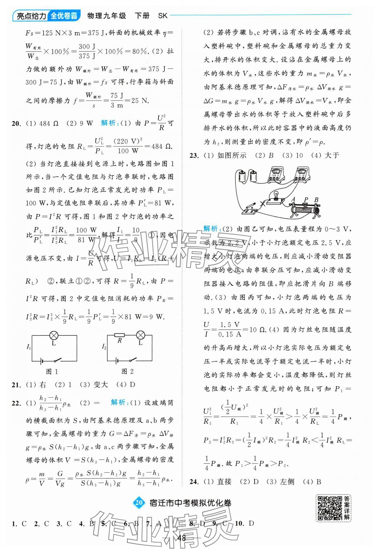 注:目前有些书本章节名称可能整理的还不是很完善,但都是按照顺序排列的,请同学们按照顺序仔细查找。练习册 2025年亮点给力全优卷霸九年级物理下册苏科版 答案主要是用来给同学们做完题方便对答案用的,请勿直接抄袭。