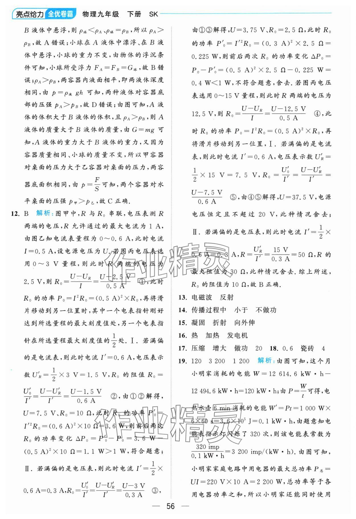 2025年亮点给力全优卷霸九年级物理下册苏科版