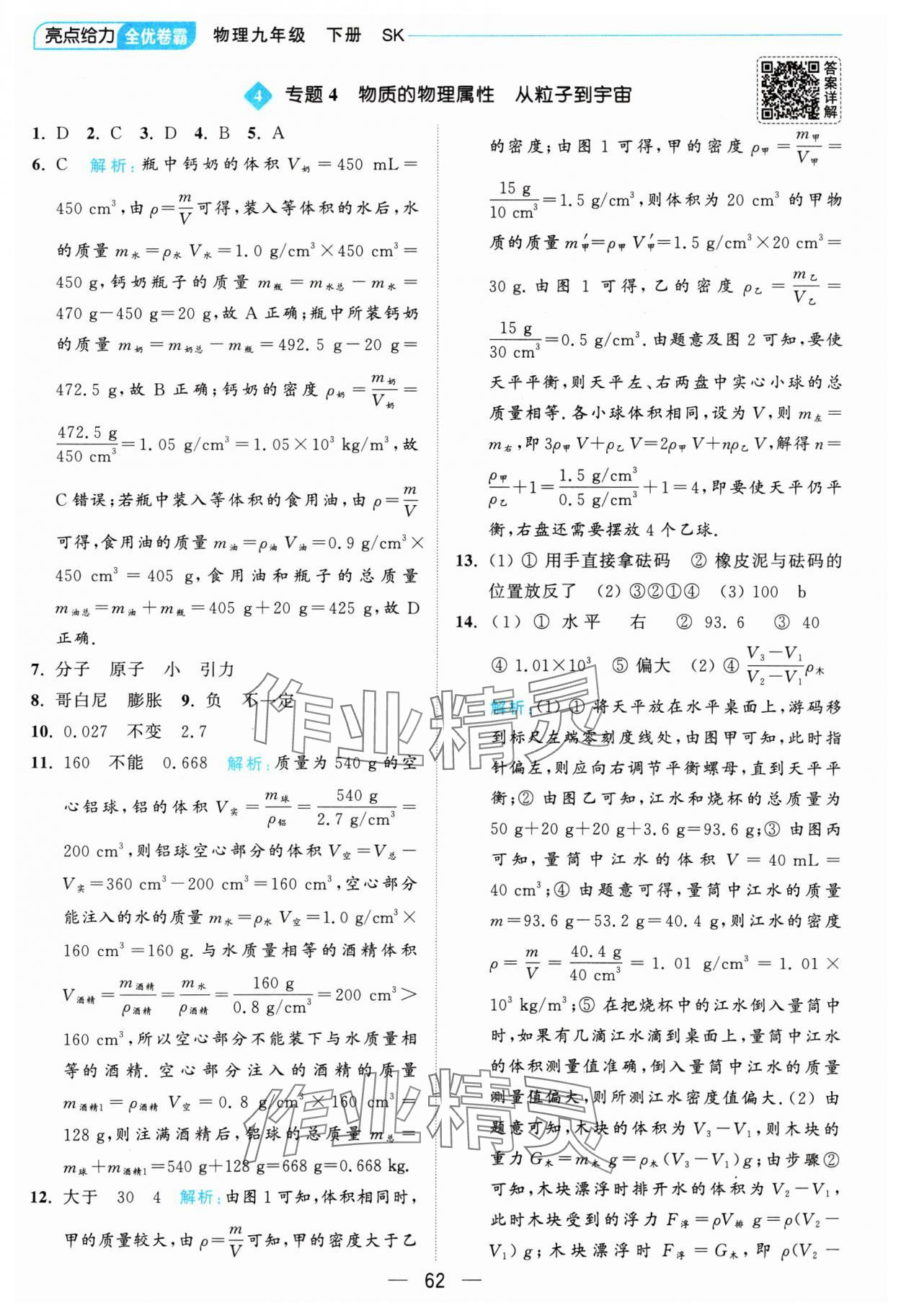 注:目前有些书本章节名称可能整理的还不是很完善,但都是按照顺序排列的,请同学们按照顺序仔细查找。练习册 2025年亮点给力全优卷霸九年级物理下册苏科版 答案主要是用来给同学们做完题方便对答案用的,请勿直接抄袭。