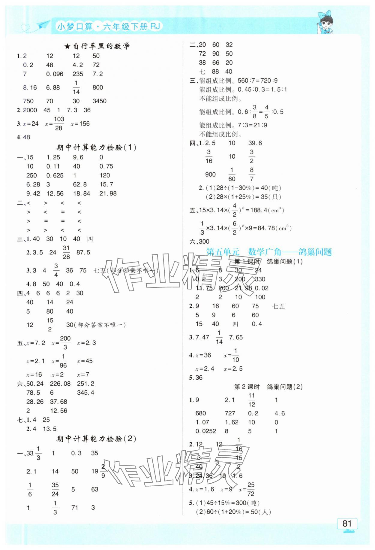 注:目前有些书本章节名称可能整理的还不是很完善,但都是按照顺序排列的,请同学们按照顺序仔细查找。练习册 2025年小梦口算六年级数学下册人教版 答案主要是用来给同学们做完题方便对答案用的,请勿直接抄袭。
