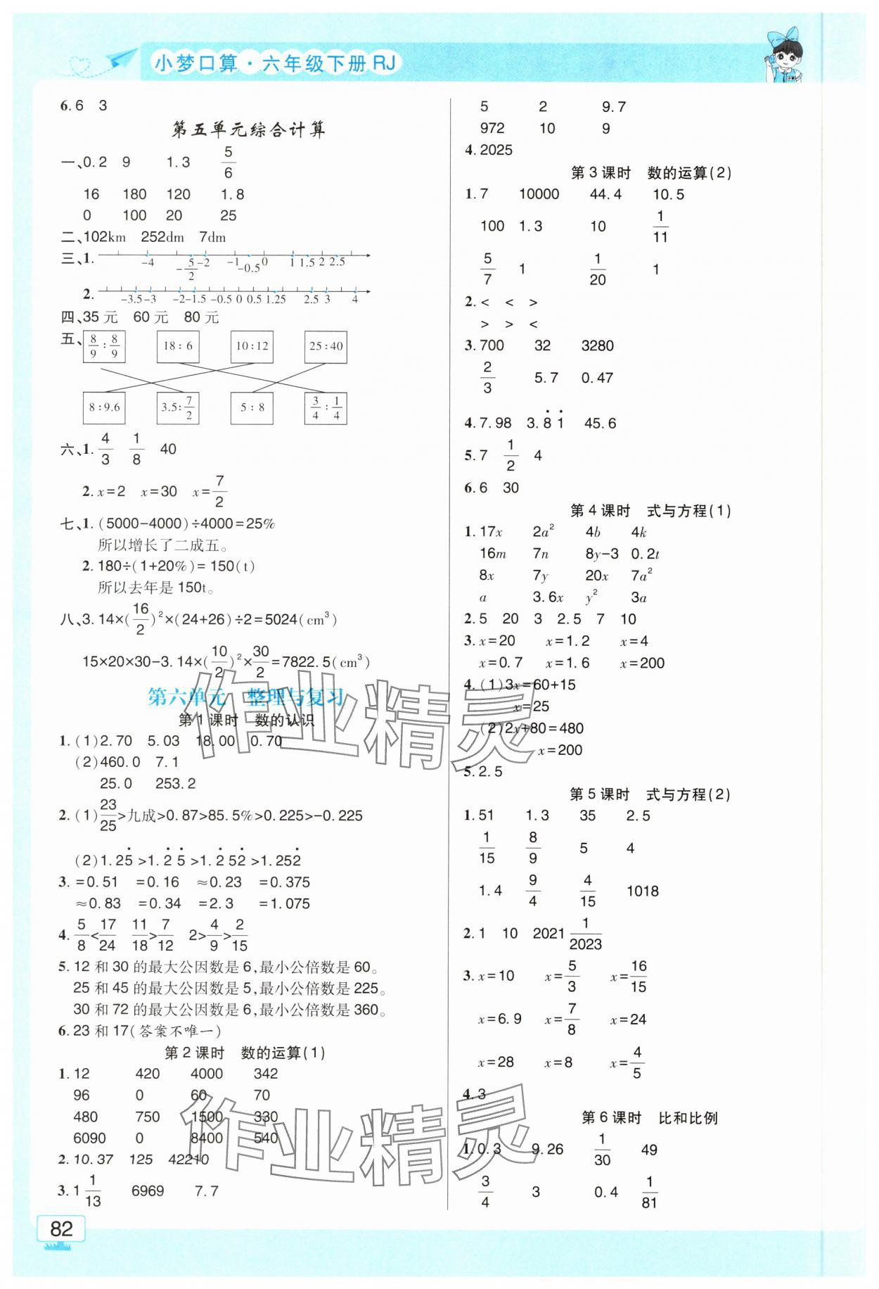 2025年小梦口算六年级数学下册人教版