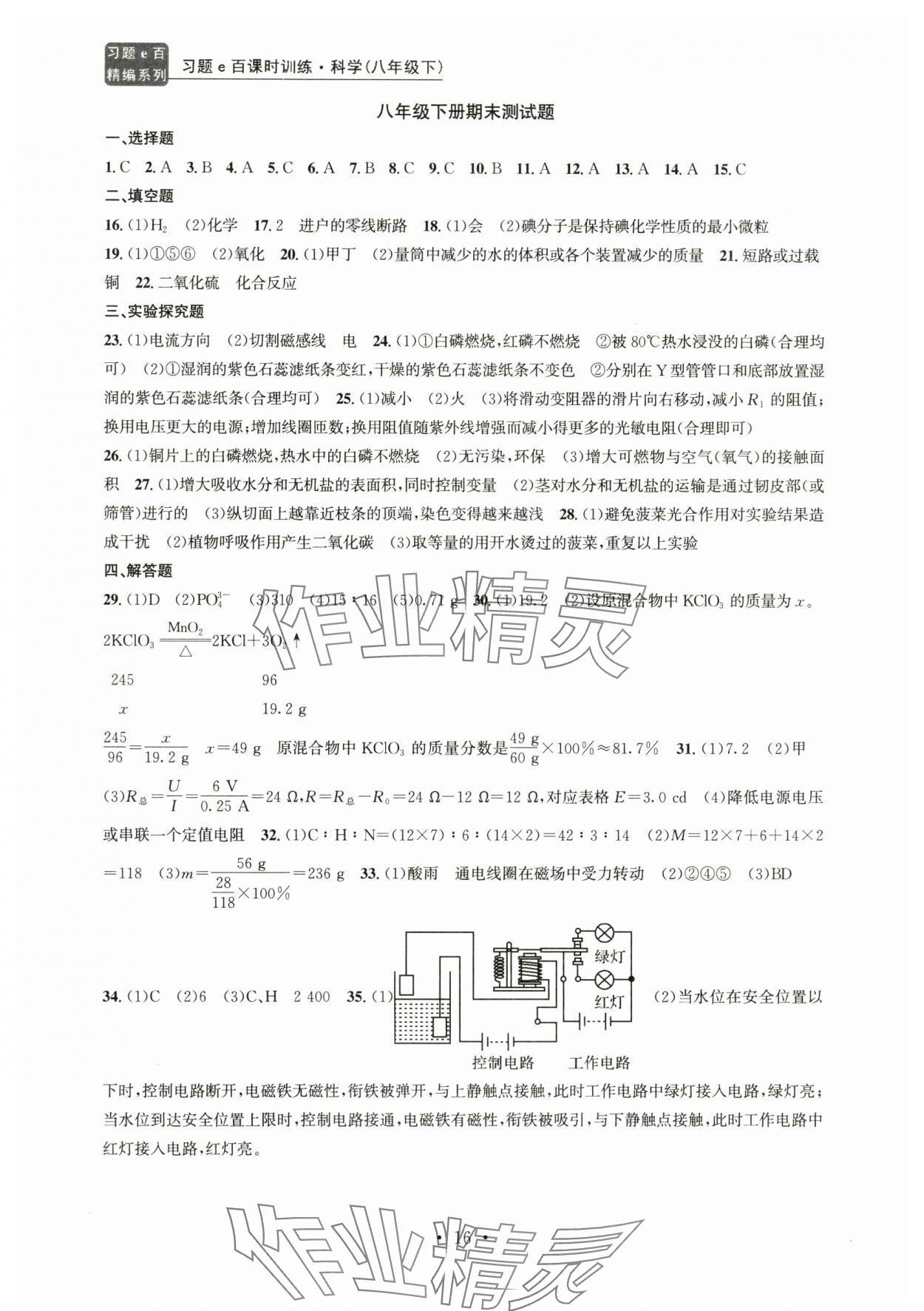 注:目前有些书本章节名称可能整理的还不是很完善,但都是按照顺序排列的,请同学们按照顺序仔细查找。练习册 2025年习题e百课时训练八年级科学下册浙教版 答案主要是用来给同学们做完题方便对答案用的,请勿直接抄袭。