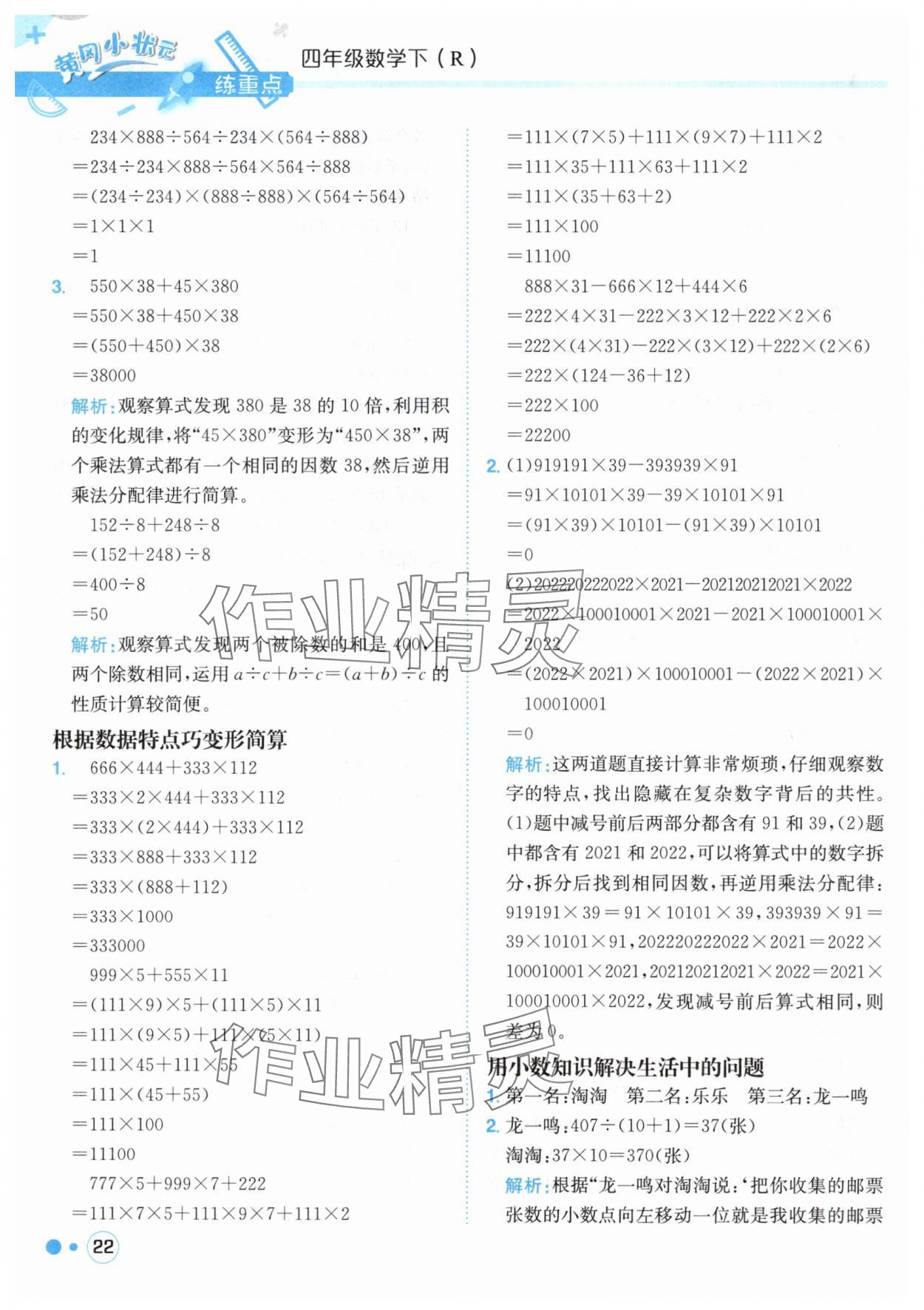 注:目前有些书本章节名称可能整理的还不是很完善,但都是按照顺序排列的,请同学们按照顺序仔细查找。练习册 2025年黄冈小状元练重点四年级数学下册人教版 答案主要是用来给同学们做完题方便对答案用的,请勿直接抄袭。