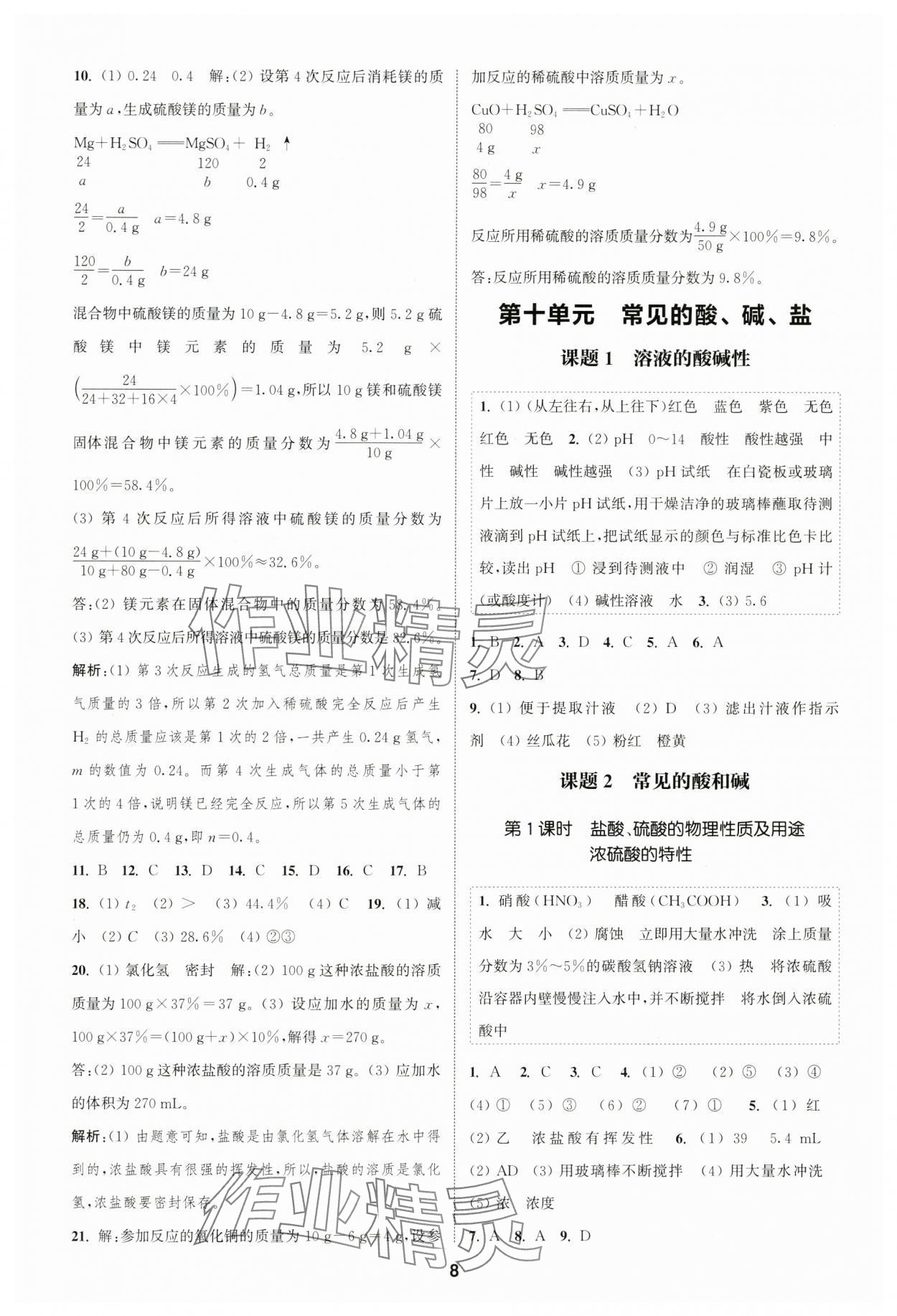注:目前有些书本章节名称可能整理的还不是很完善,但都是按照顺序排列的,请同学们按照顺序仔细查找。练习册 2025年通城学典课时作业本九年级化学下册人教版山西专版 答案主要是用来给同学们做完题方便对答案用的,请勿直接抄袭。