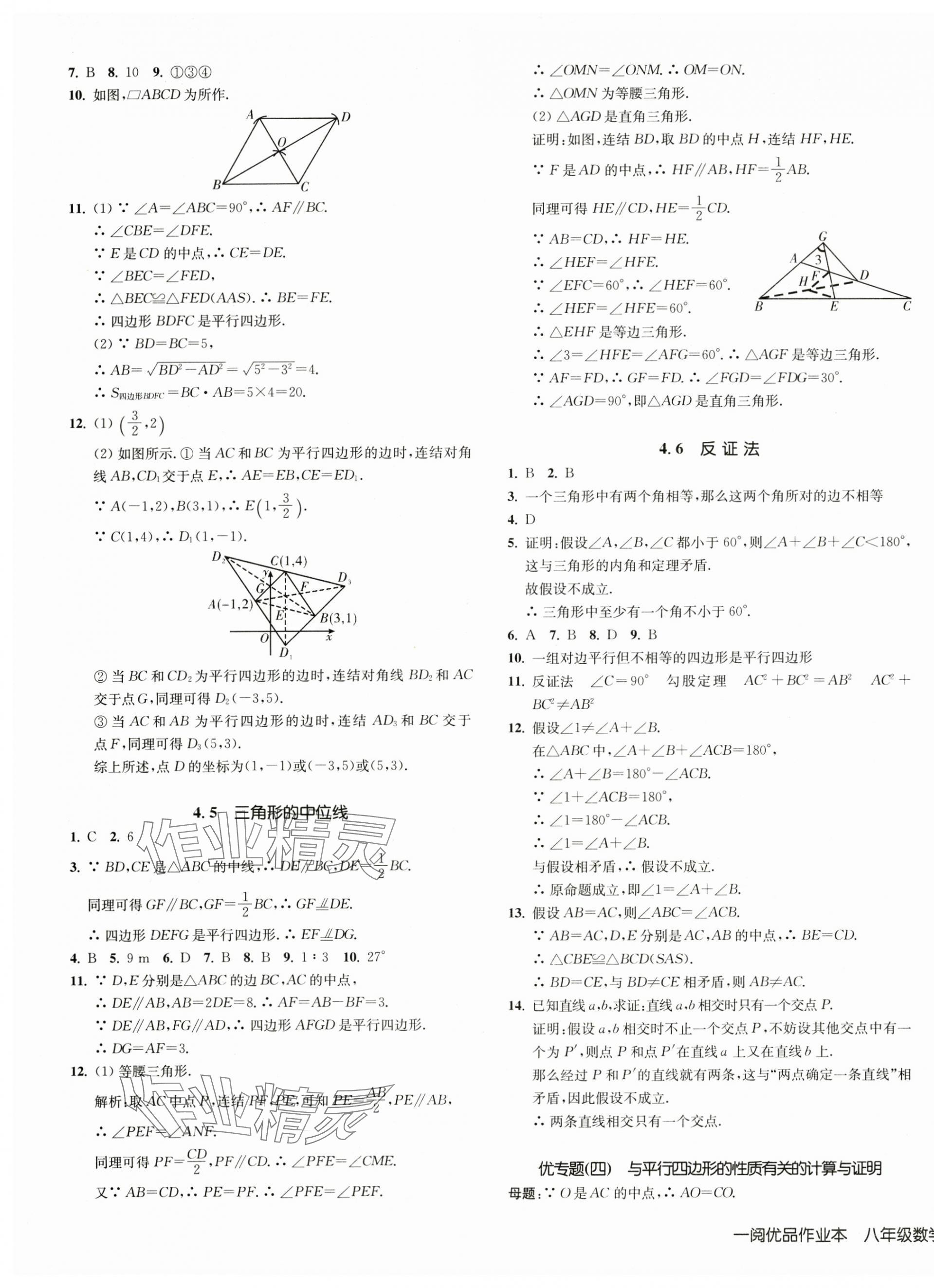 注:目前有些书本章节名称可能整理的还不是很完善,但都是按照顺序排列的,请同学们按照顺序仔细查找。练习册 2025年一阅优品作业本八年级数学下册浙教版 答案主要是用来给同学们做完题方便对答案用的,请勿直接抄袭。