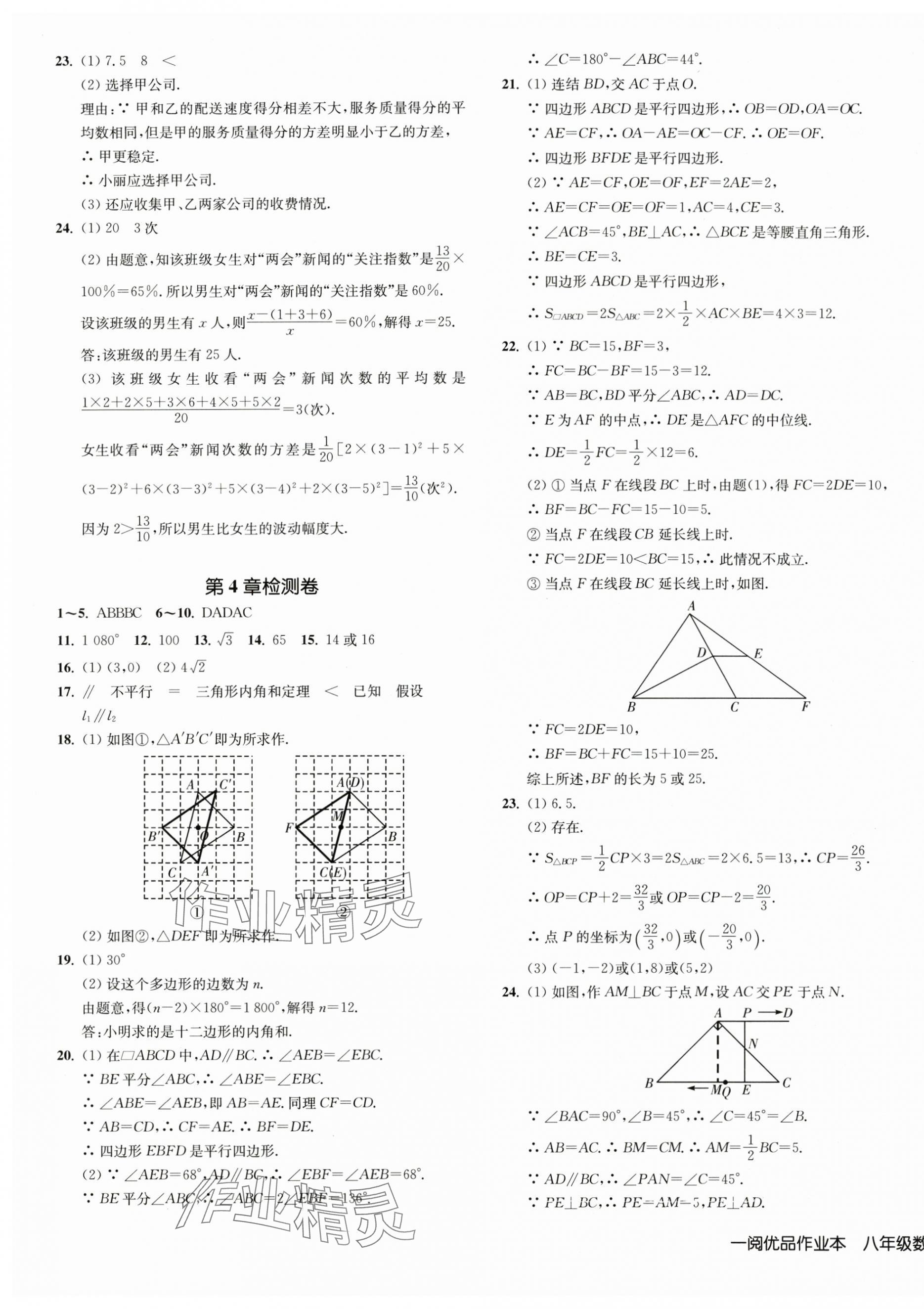 注:目前有些书本章节名称可能整理的还不是很完善,但都是按照顺序排列的,请同学们按照顺序仔细查找。练习册 2025年一阅优品作业本八年级数学下册浙教版 答案主要是用来给同学们做完题方便对答案用的,请勿直接抄袭。