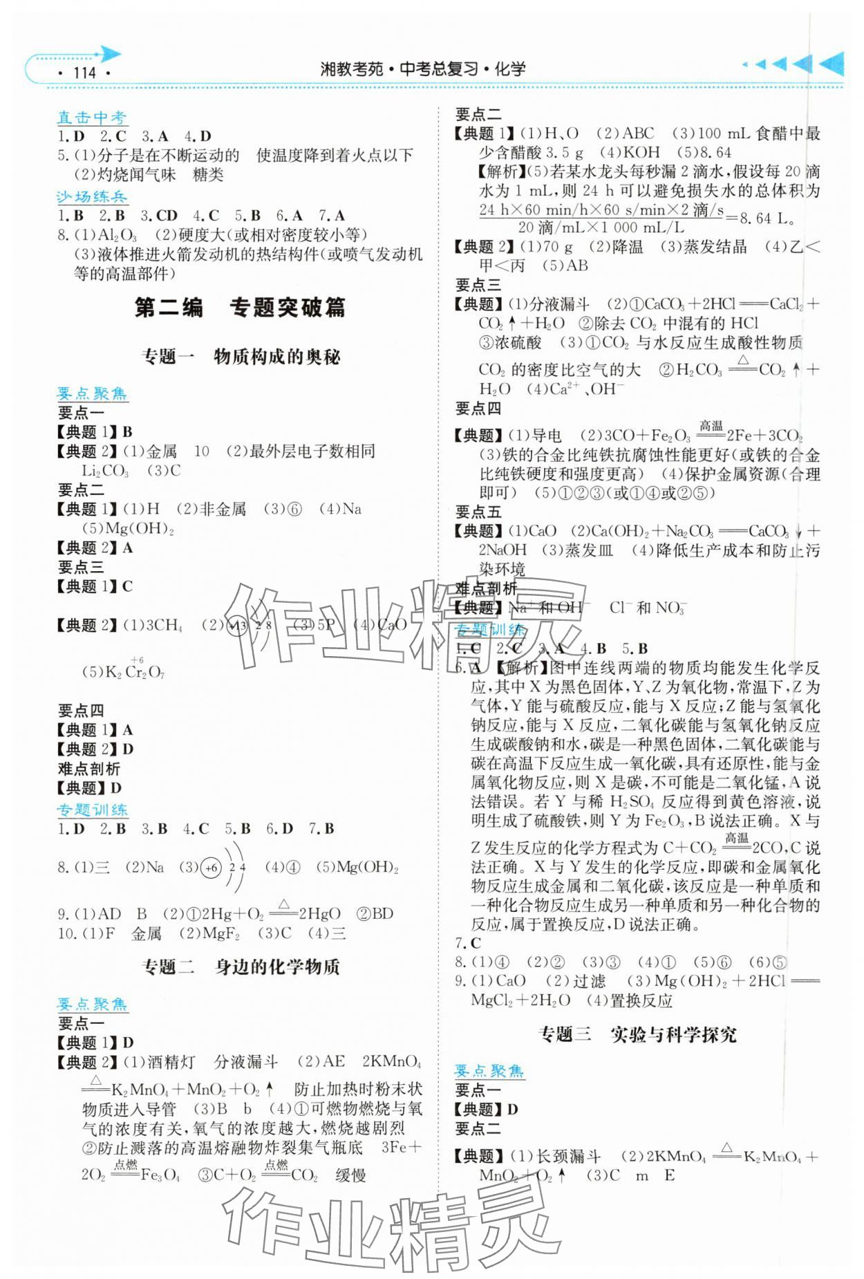 注:目前有些书本章节名称可能整理的还不是很完善,但都是按照顺序排列的,请同学们按照顺序仔细查找。练习册 2025年湘教考苑中考总复习化学张家界版 答案主要是用来给同学们做完题方便对答案用的,请勿直接抄袭。