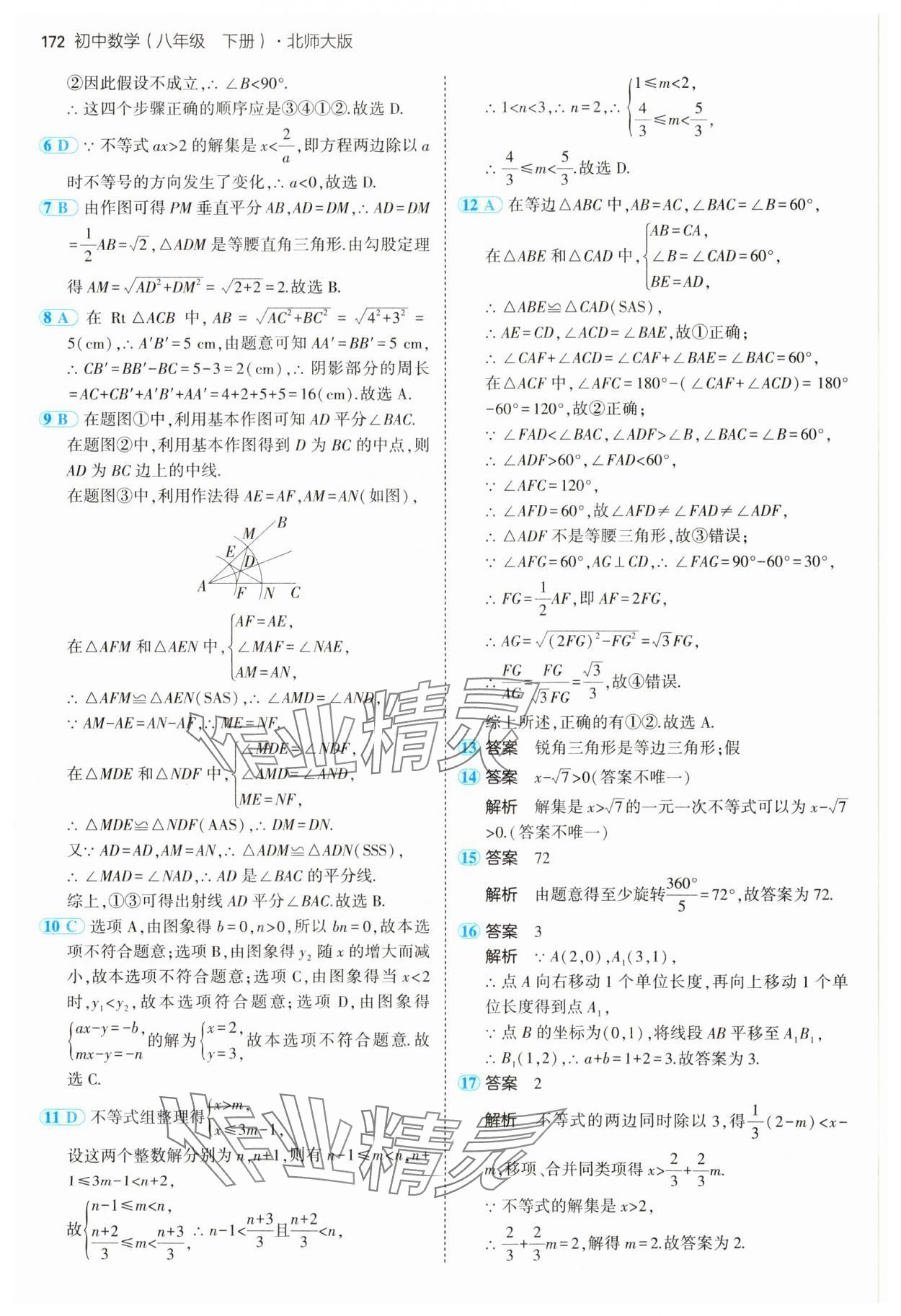 注:目前有些书本章节名称可能整理的还不是很完善,但都是按照顺序排列的,请同学们按照顺序仔细查找。练习册 2025年5年中考3年模拟八年级数学下册北师大版 答案主要是用来给同学们做完题方便对答案用的,请勿直接抄袭。