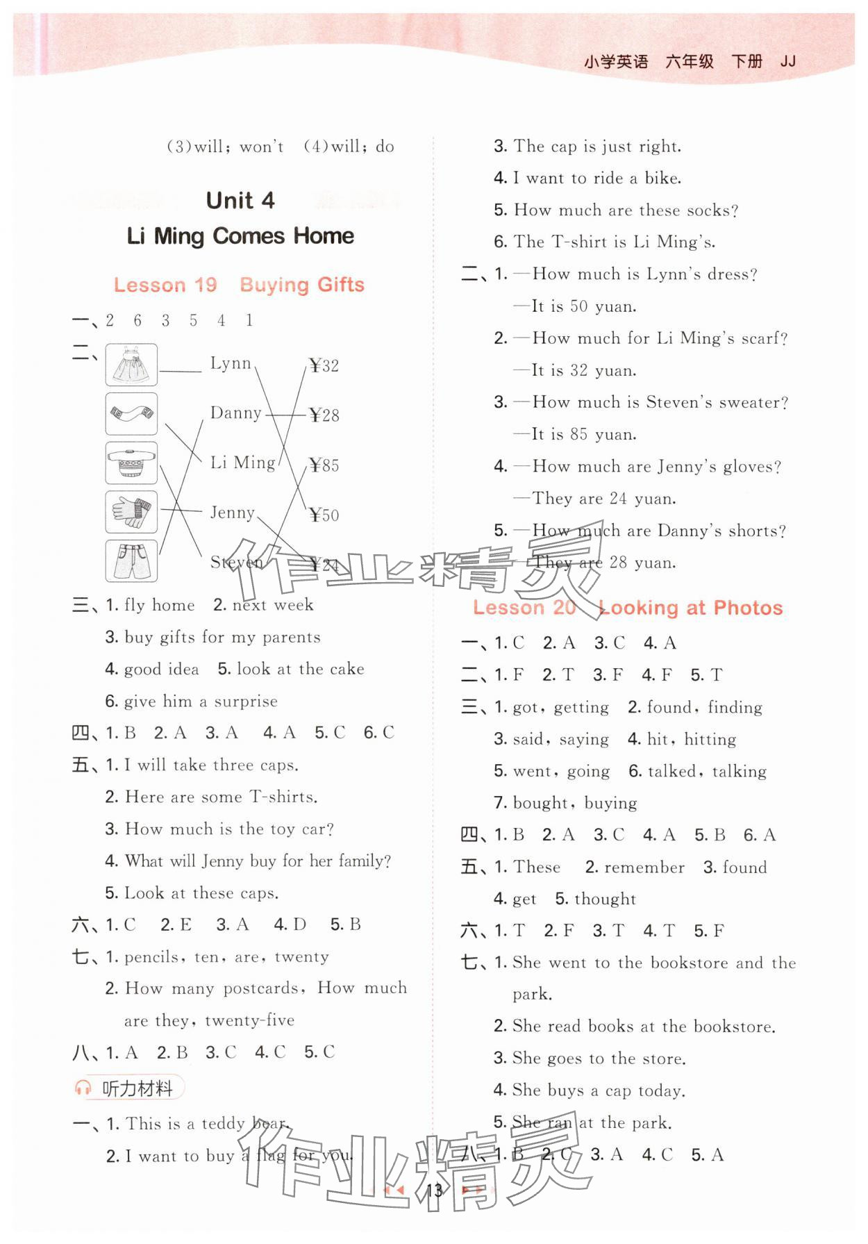 注:目前有些书本章节名称可能整理的还不是很完善,但都是按照顺序排列的,请同学们按照顺序仔细查找。练习册 2025年53天天练六年级英语下册冀教版 答案主要是用来给同学们做完题方便对答案用的,请勿直接抄袭。