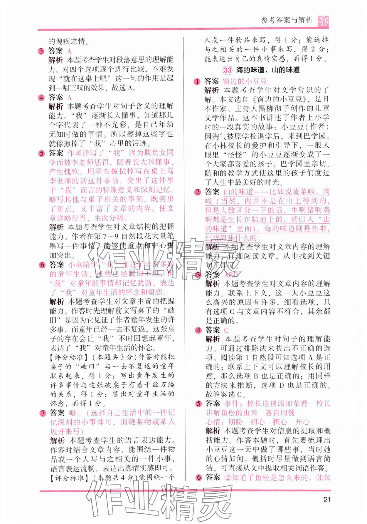 2025年木头马阅读力测评六年级语文下册人教版武汉专版