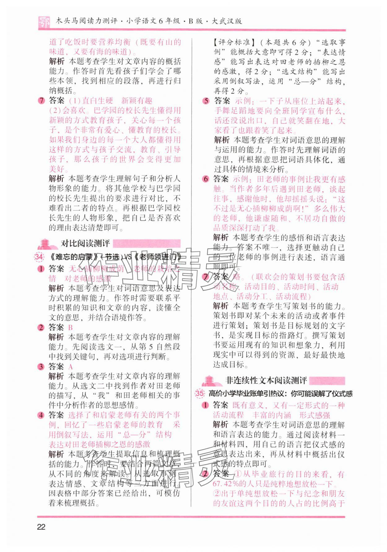 注:目前有些书本章节名称可能整理的还不是很完善,但都是按照顺序排列的,请同学们按照顺序仔细查找。练习册 2025年木头马阅读力测评六年级语文下册人教版武汉专版 答案主要是用来给同学们做完题方便对答案用的,请勿直接抄袭。