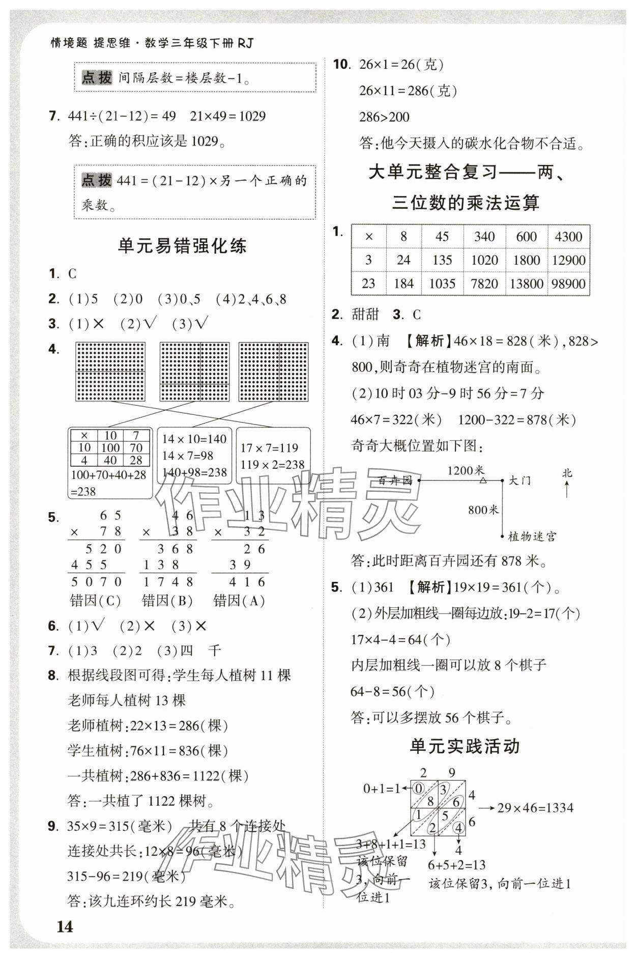 注:目前有些书本章节名称可能整理的还不是很完善,但都是按照顺序排列的,请同学们按照顺序仔细查找。练习册 2025年情境题提思维三年级数学下册人教版 答案主要是用来给同学们做完题方便对答案用的,请勿直接抄袭。