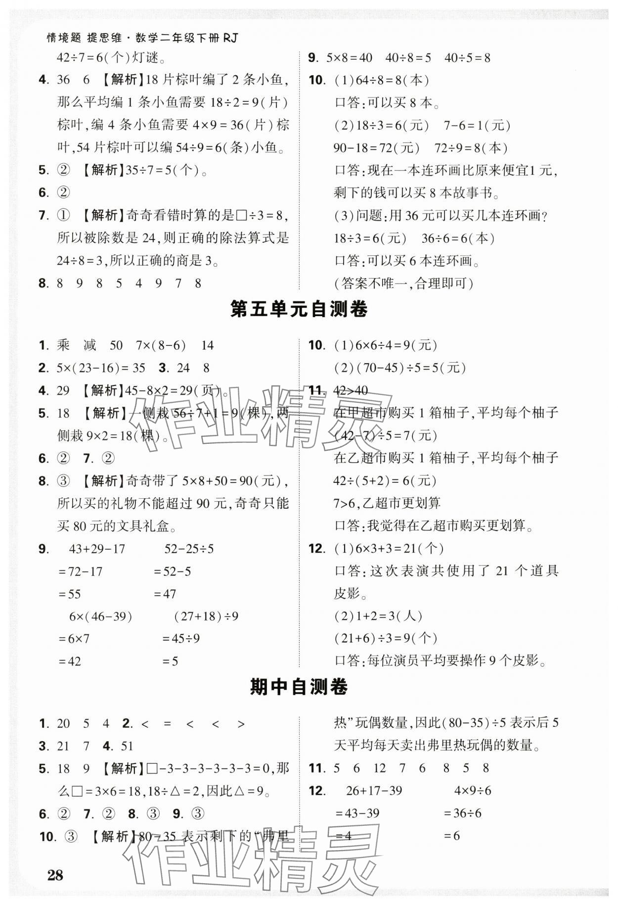 注:目前有些书本章节名称可能整理的还不是很完善,但都是按照顺序排列的,请同学们按照顺序仔细查找。练习册 2025年小白鸥情境题二年级数学下册人教版 答案主要是用来给同学们做完题方便对答案用的,请勿直接抄袭。