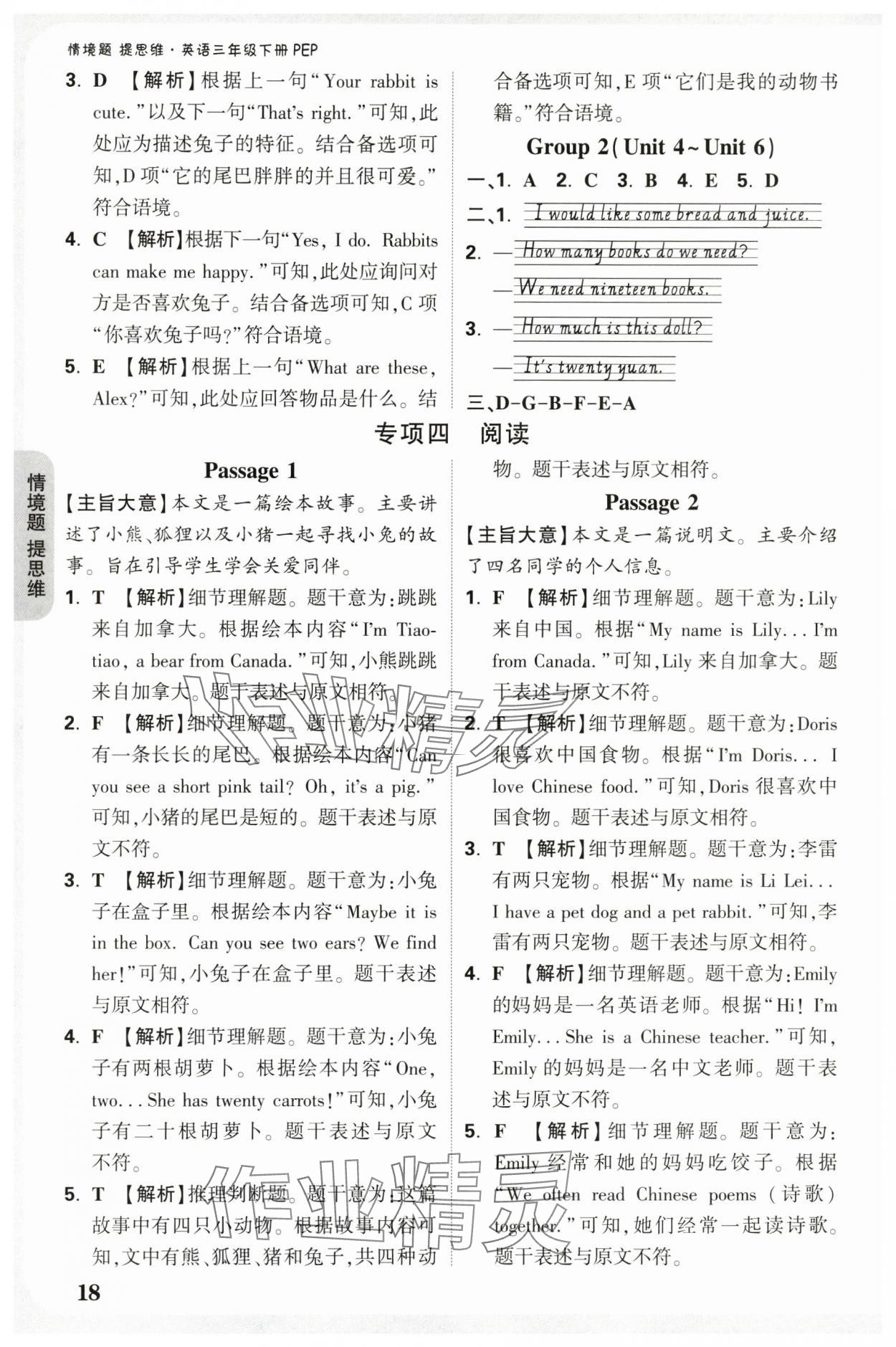 注:目前有些书本章节名称可能整理的还不是很完善,但都是按照顺序排列的,请同学们按照顺序仔细查找。练习册 2025年小白鸥情境题三年级英语下册人教版 答案主要是用来给同学们做完题方便对答案用的,请勿直接抄袭。