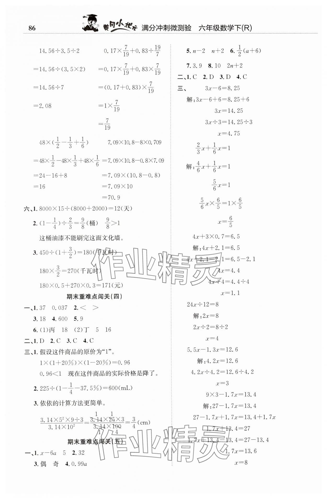 注:目前有些书本章节名称可能整理的还不是很完善,但都是按照顺序排列的,请同学们按照顺序仔细查找。练习册 2025年黄冈小状元满分冲刺微测验六年级数学下册人教版 答案主要是用来给同学们做完题方便对答案用的,请勿直接抄袭。