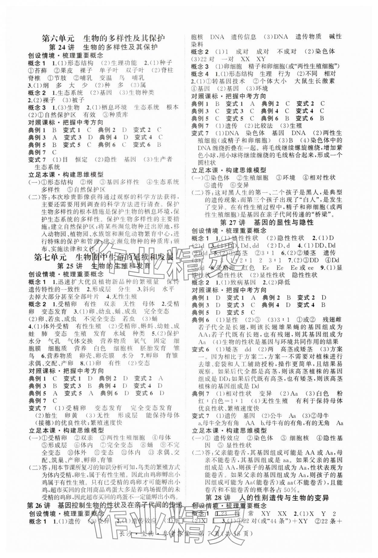 注:目前有些书本章节名称可能整理的还不是很完善,但都是按照顺序排列的,请同学们按照顺序仔细查找。练习册 2025年星城中考生物长沙专版 答案主要是用来给同学们做完题方便对答案用的,请勿直接抄袭。