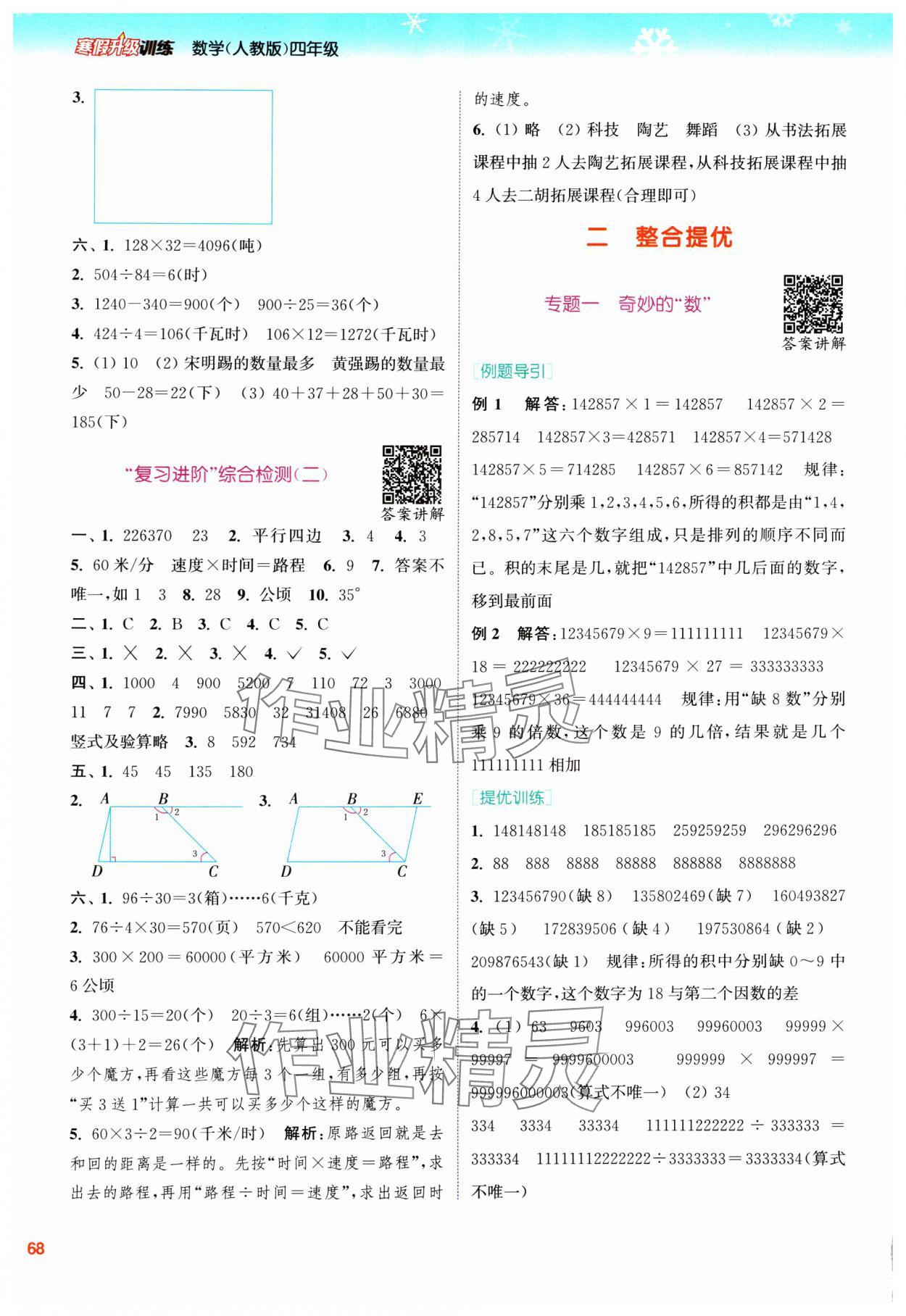 注:目前有些书本章节名称可能整理的还不是很完善,但都是按照顺序排列的,请同学们按照顺序仔细查找。练习册 2025年寒假升级训练浙江教育出版社四年级数学人教版 答案主要是用来给同学们做完题方便对答案用的,请勿直接抄袭。