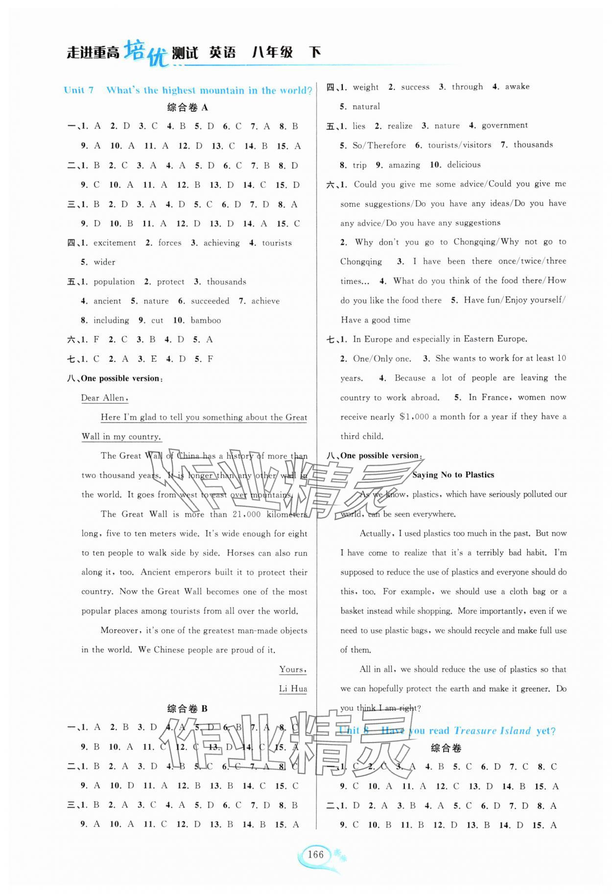 注:目前有些书本章节名称可能整理的还不是很完善,但都是按照顺序排列的,请同学们按照顺序仔细查找。练习册 2025年走进重高培优测试八年级英语下册人教版双色版 答案主要是用来给同学们做完题方便对答案用的,请勿直接抄袭。
