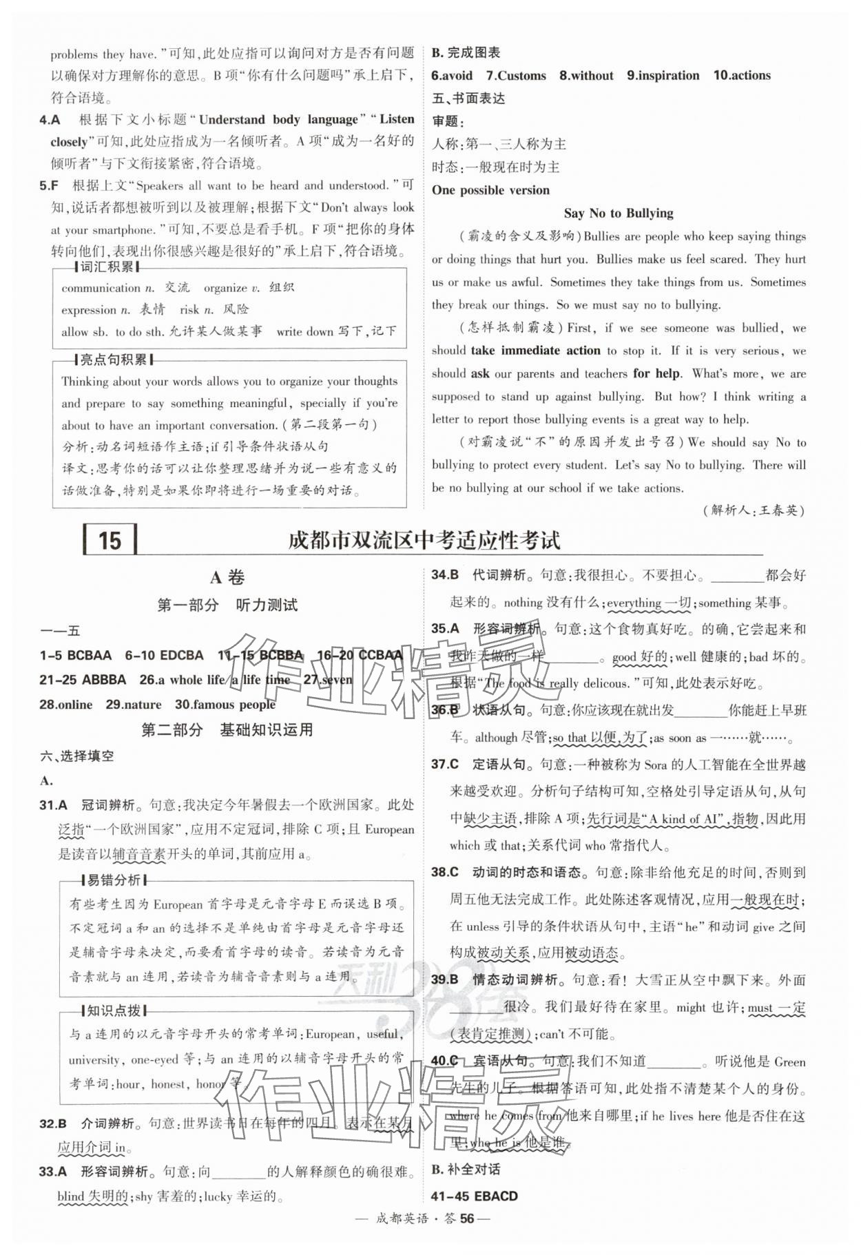 注:目前有些书本章节名称可能整理的还不是很完善,但都是按照顺序排列的,请同学们按照顺序仔细查找。练习册 2025年天利38套中考试题精选英语成都专版 答案主要是用来给同学们做完题方便对答案用的,请勿直接抄袭。