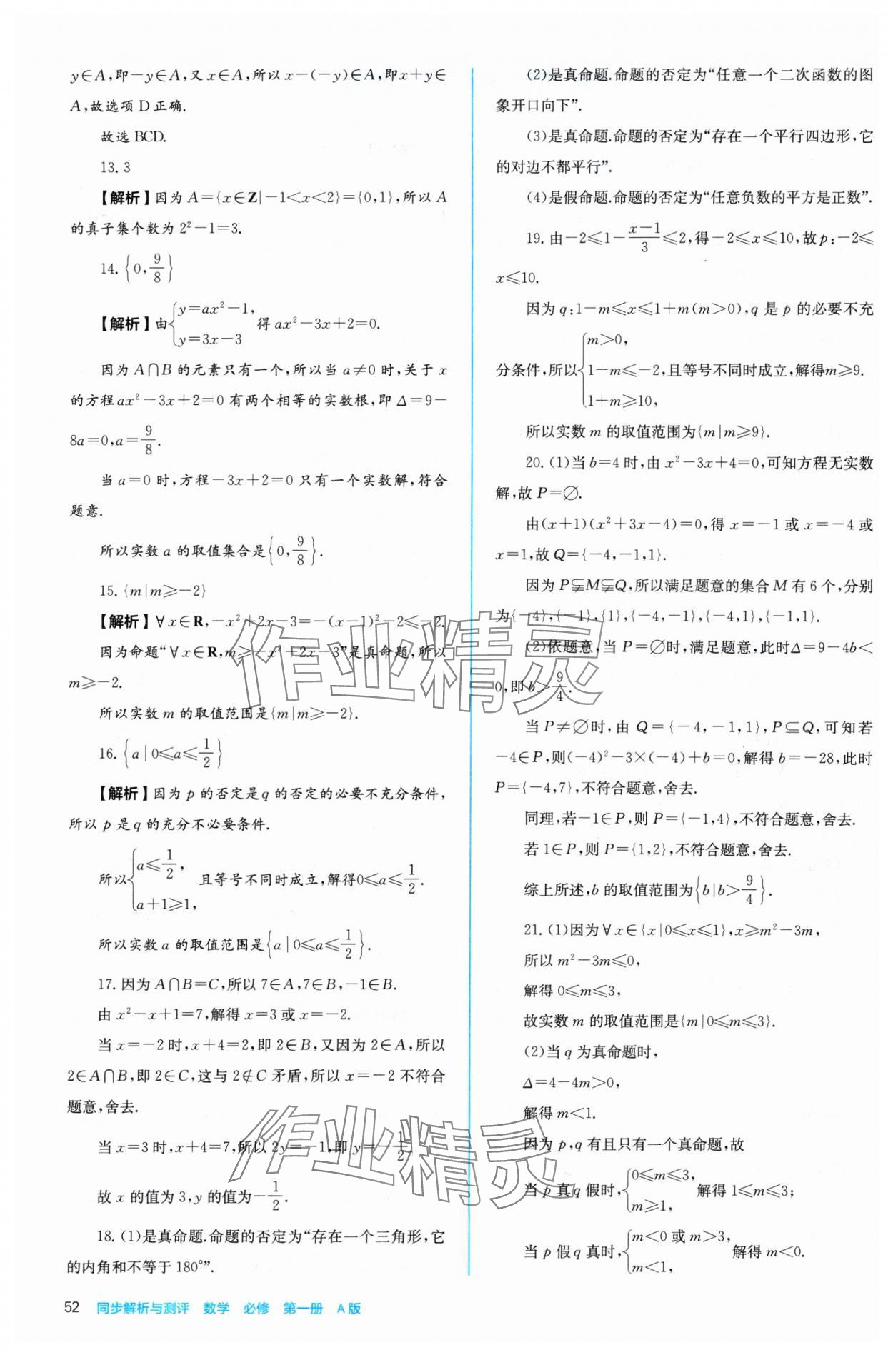 2024年人教金学典同步练习册同步解析与测评高中数学必修第一册人教版A版