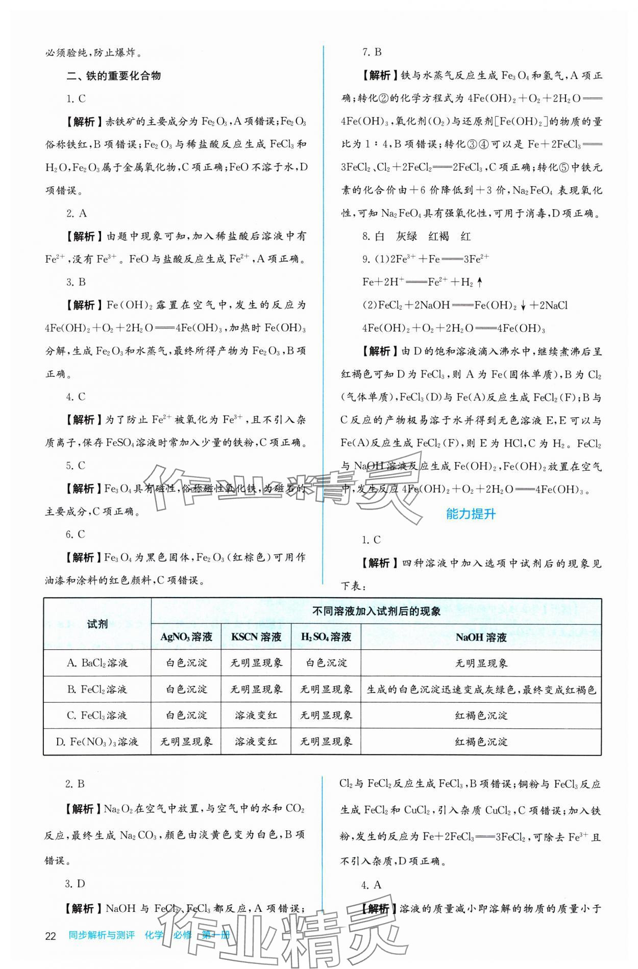 2024年人教金学典同步练习册同步解析与测评化学必修第一册
