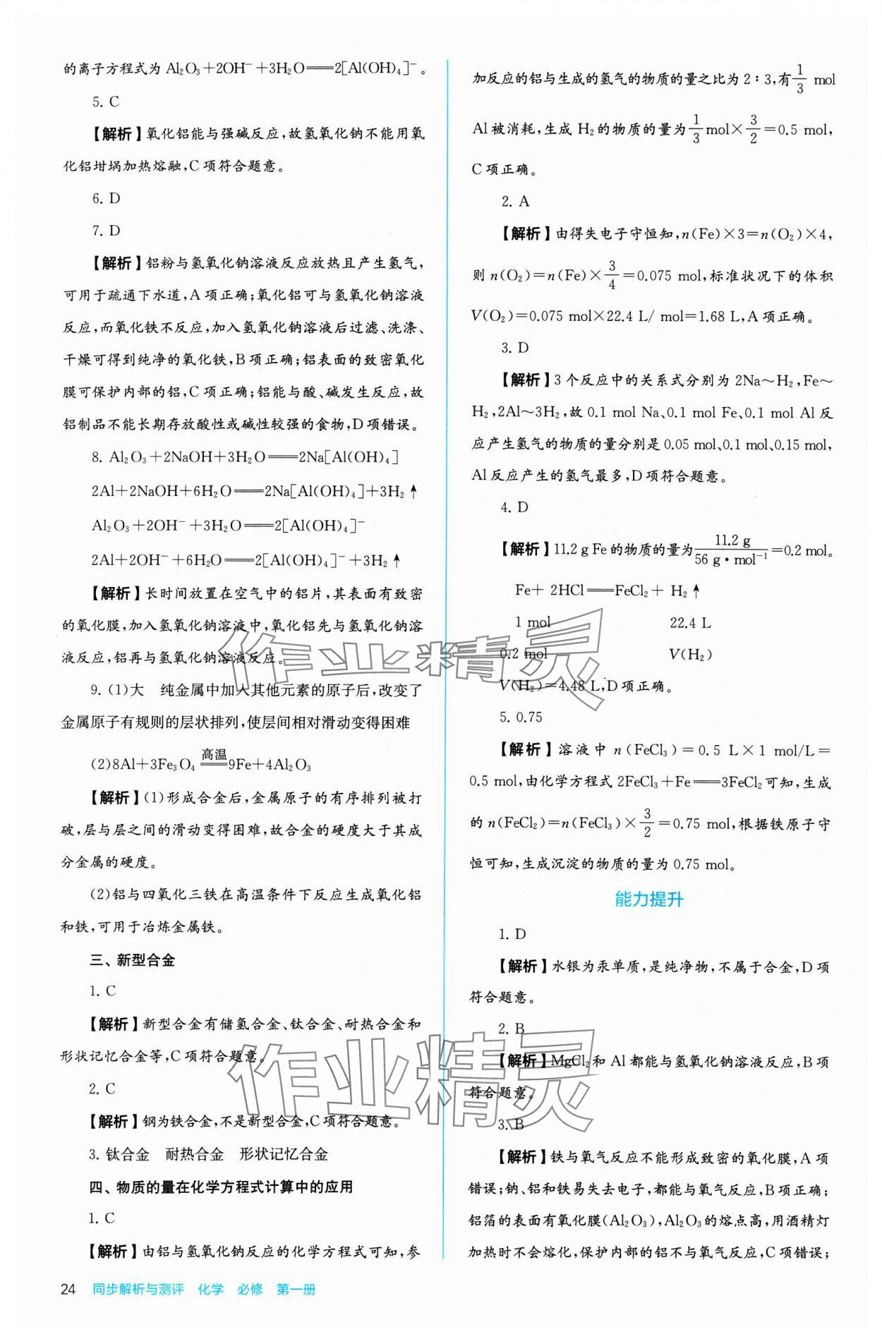 注:目前有些书本章节名称可能整理的还不是很完善,但都是按照顺序排列的,请同学们按照顺序仔细查找。练习册 2024年人教金学典同步练习册同步解析与测评化学必修第一册 答案主要是用来给同学们做完题方便对答案用的,请勿直接抄袭。