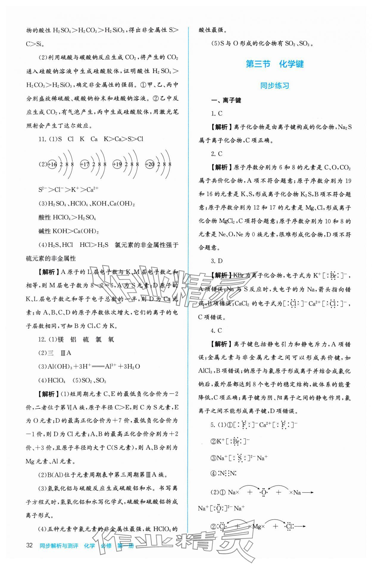 注:目前有些书本章节名称可能整理的还不是很完善,但都是按照顺序排列的,请同学们按照顺序仔细查找。练习册 2024年人教金学典同步练习册同步解析与测评化学必修第一册 答案主要是用来给同学们做完题方便对答案用的,请勿直接抄袭。