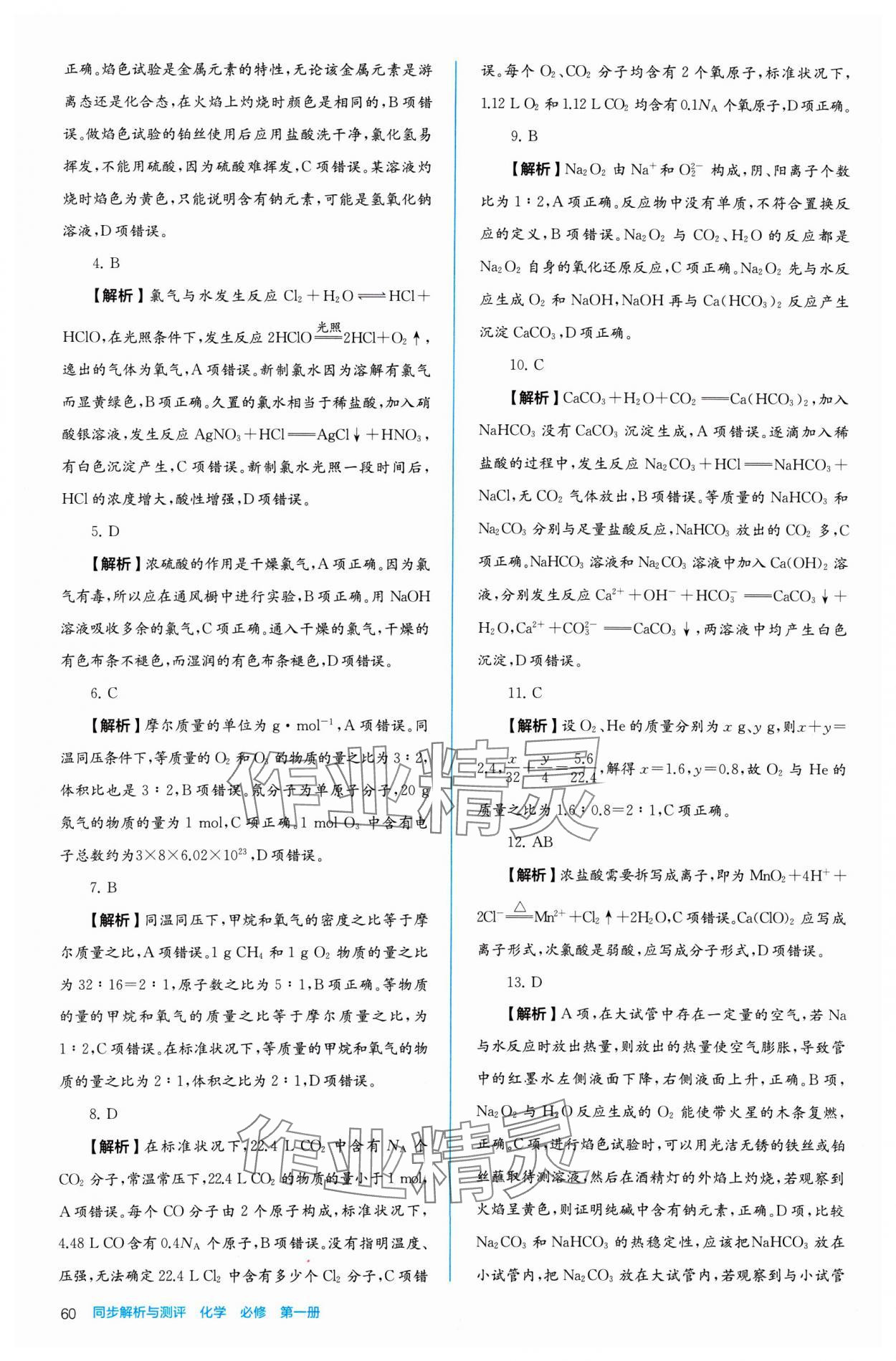 2024年人教金学典同步练习册同步解析与测评化学必修第一册