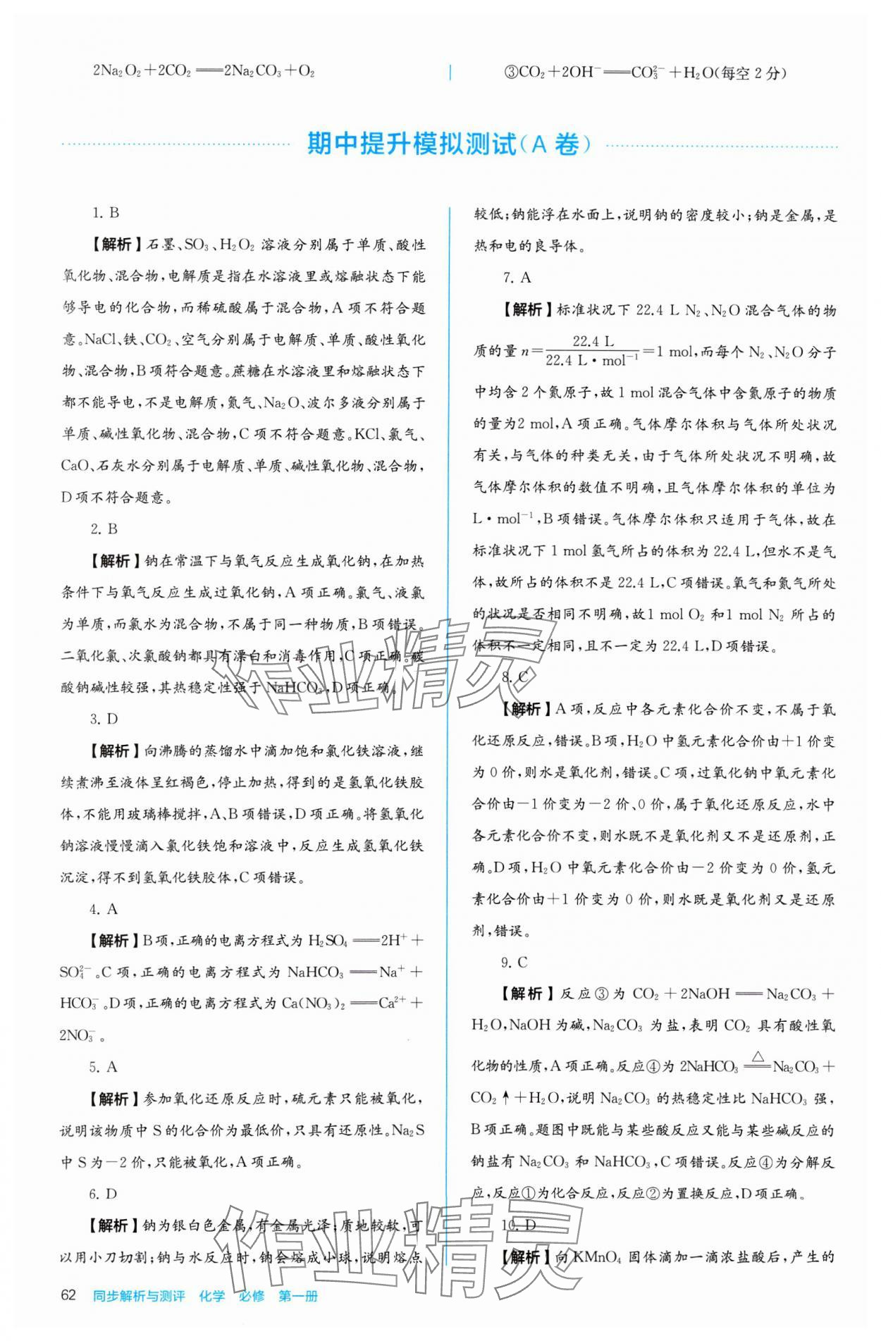 2024年人教金学典同步练习册同步解析与测评化学必修第一册