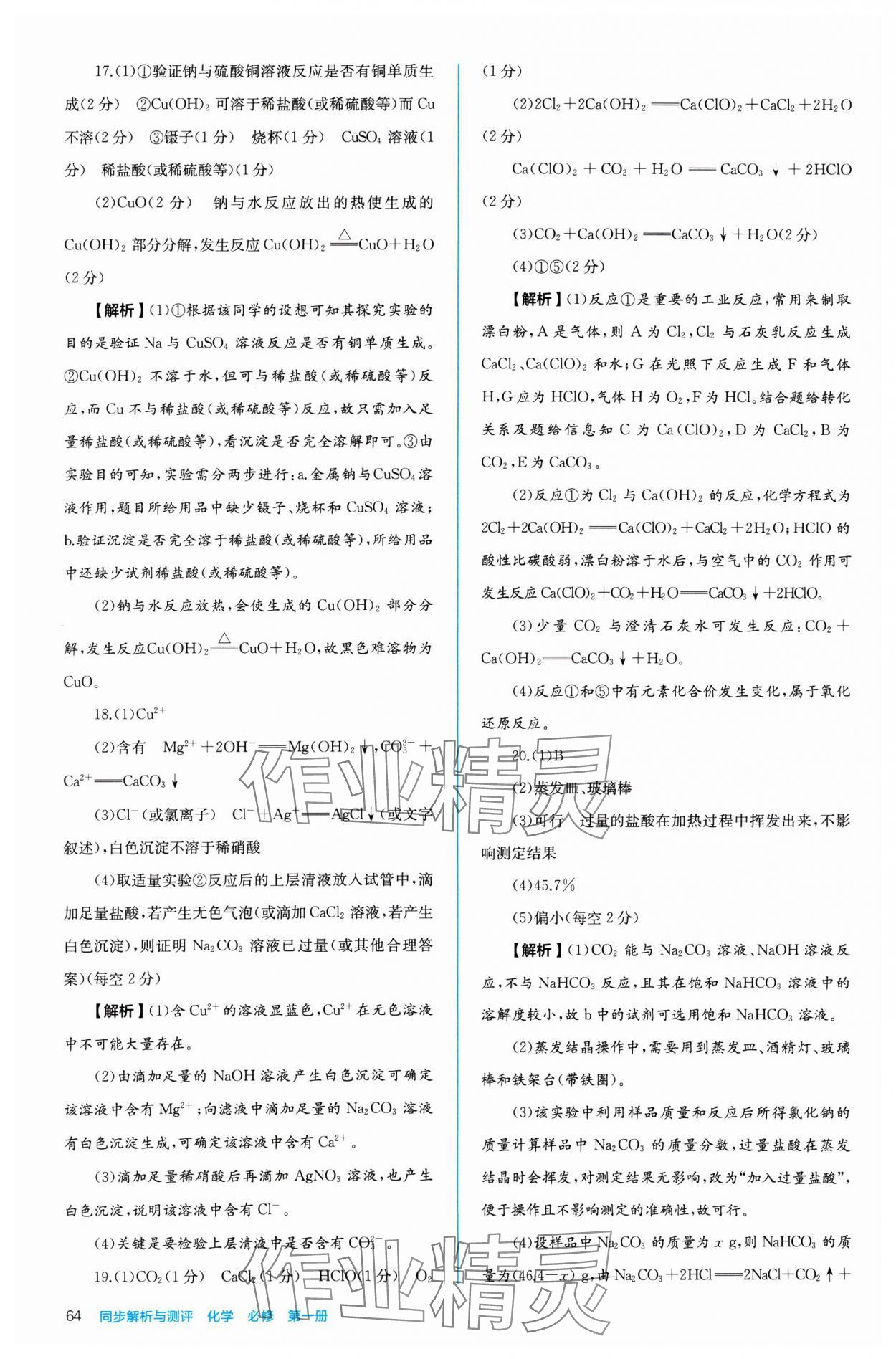 注:目前有些书本章节名称可能整理的还不是很完善,但都是按照顺序排列的,请同学们按照顺序仔细查找。练习册 2024年人教金学典同步练习册同步解析与测评化学必修第一册 答案主要是用来给同学们做完题方便对答案用的,请勿直接抄袭。