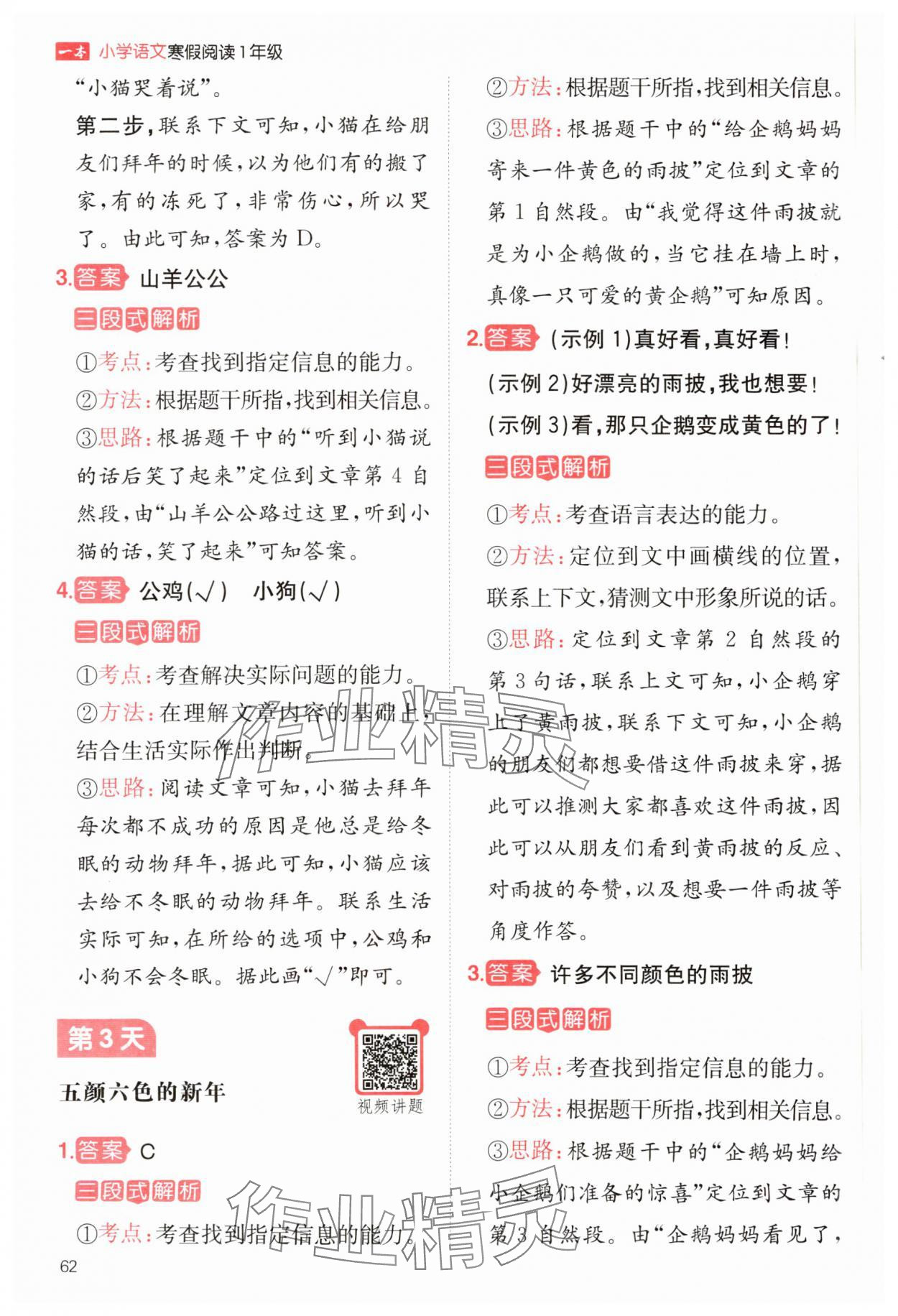 注:目前有些书本章节名称可能整理的还不是很完善,但都是按照顺序排列的,请同学们按照顺序仔细查找。练习册 2025年一本小学语文寒假阅读一年级语文 答案主要是用来给同学们做完题方便对答案用的,请勿直接抄袭。