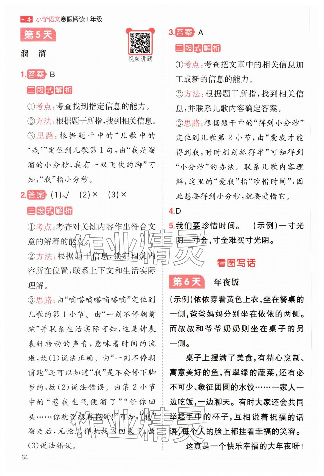 注:目前有些书本章节名称可能整理的还不是很完善,但都是按照顺序排列的,请同学们按照顺序仔细查找。练习册 2025年一本小学语文寒假阅读一年级语文 答案主要是用来给同学们做完题方便对答案用的,请勿直接抄袭。
