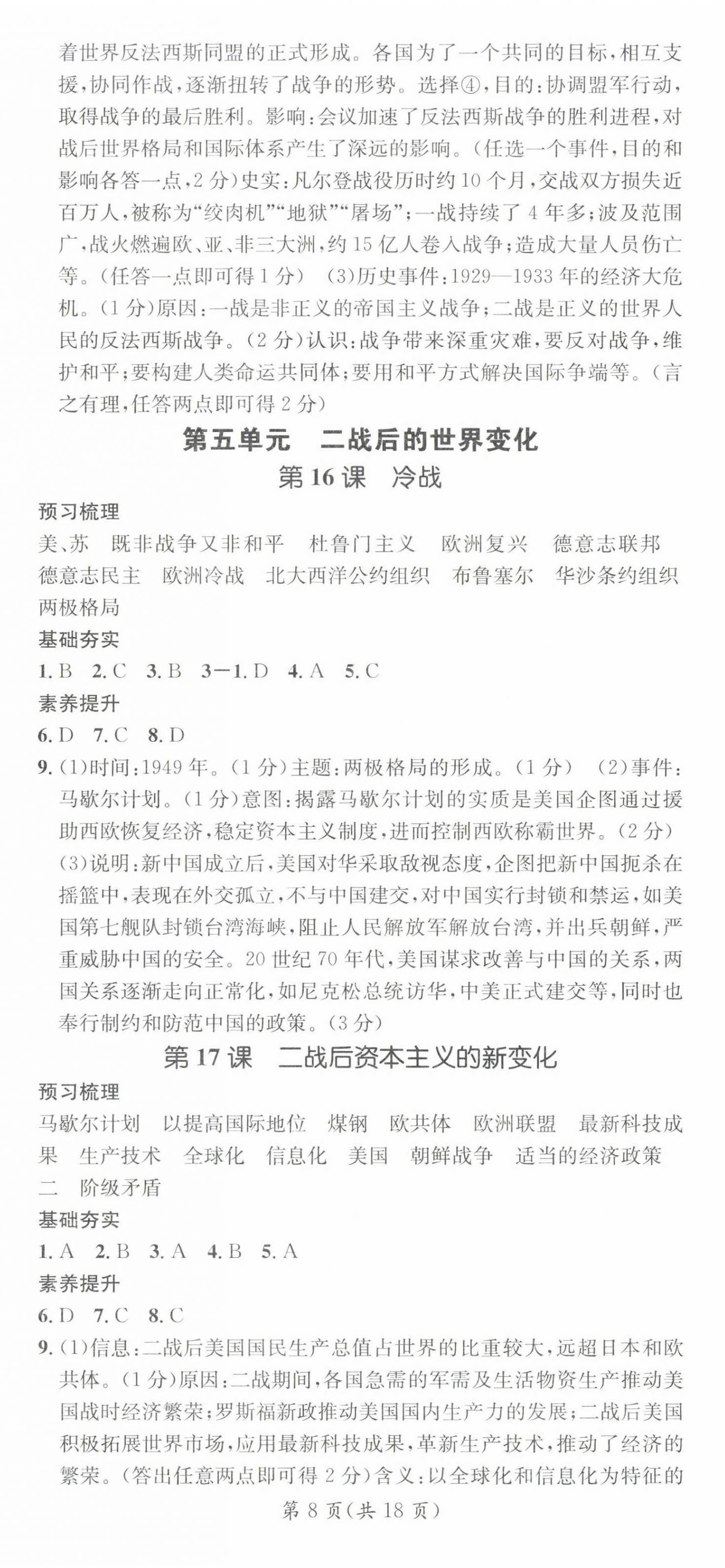 注:目前有些书本章节名称可能整理的还不是很完善,但都是按照顺序排列的,请同学们按照顺序仔细查找。练习册 2025年名师测控九年级历史下册人教版陕西专版 答案主要是用来给同学们做完题方便对答案用的,请勿直接抄袭。