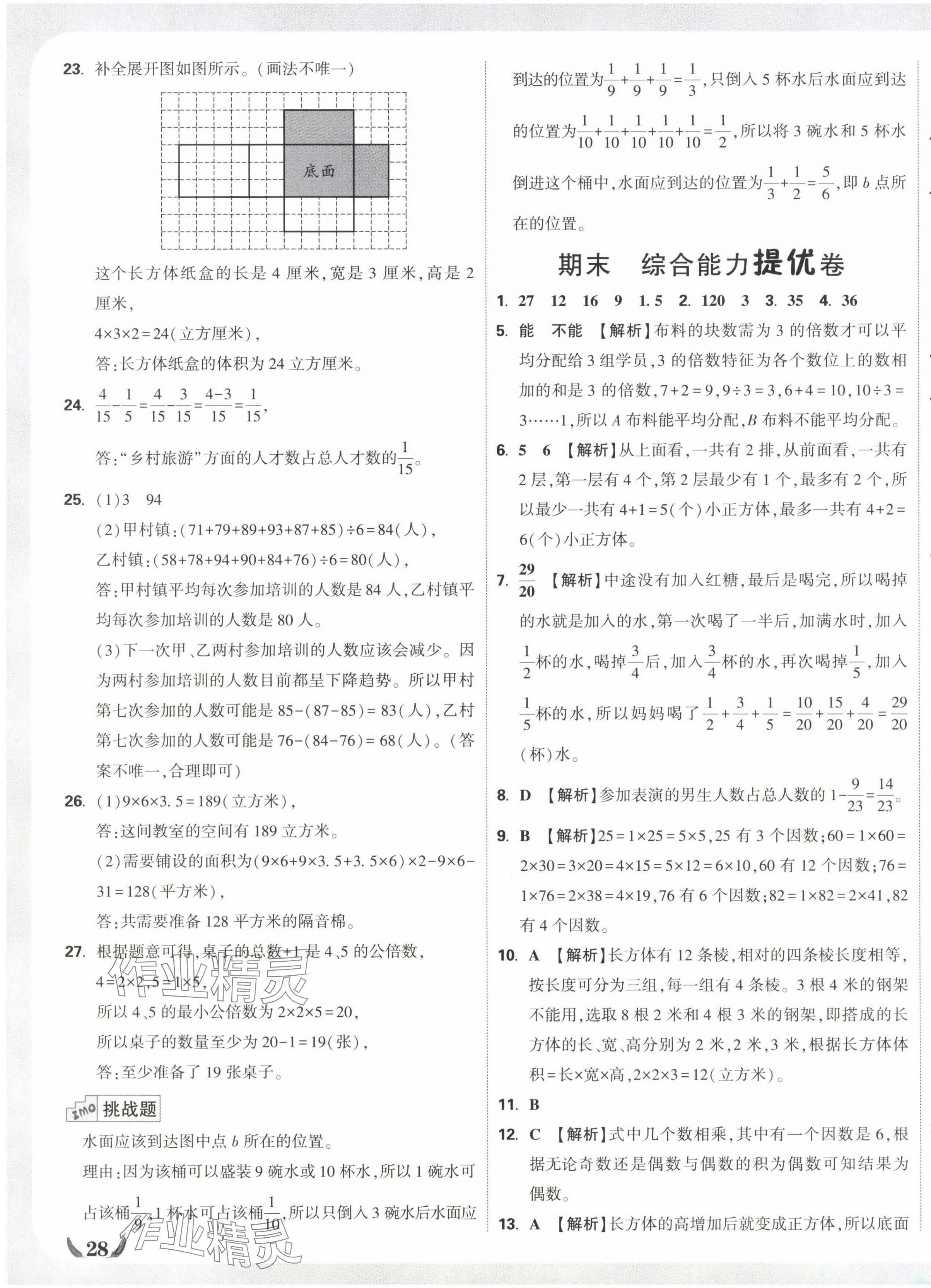 注:目前有些书本章节名称可能整理的还不是很完善,但都是按照顺序排列的,请同学们按照顺序仔细查找。练习册 2025年小白鸥情境卷五年级数学下册人教版 答案主要是用来给同学们做完题方便对答案用的,请勿直接抄袭。