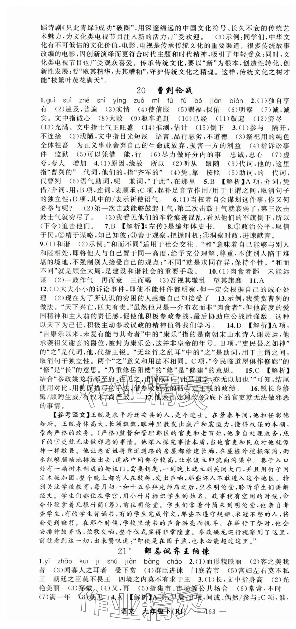 注:目前有些书本章节名称可能整理的还不是很完善,但都是按照顺序排列的,请同学们按照顺序仔细查找。练习册 2025年黄冈金牌之路练闯考九年级语文下册人教版山西专版 答案主要是用来给同学们做完题方便对答案用的,请勿直接抄袭。