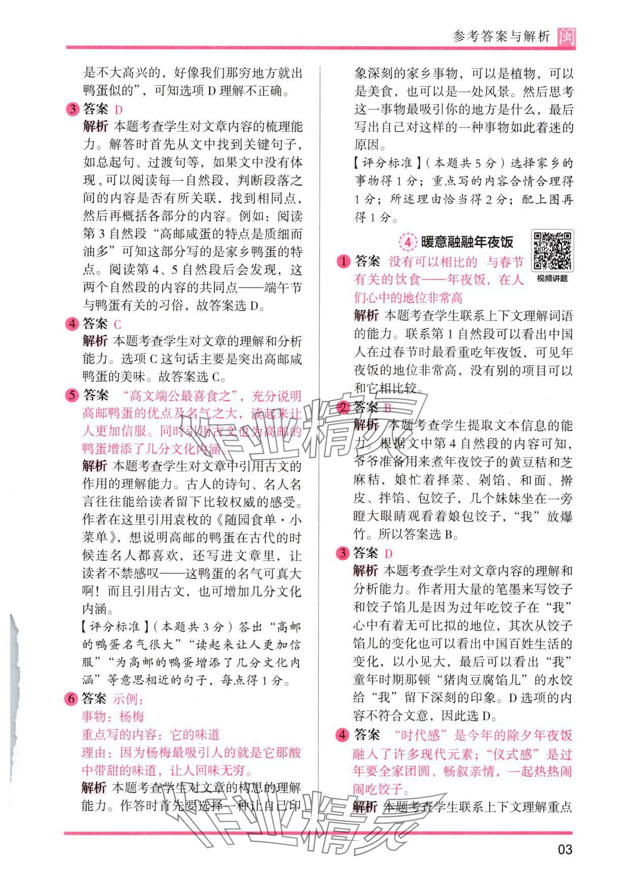 2025年木头马阅读力测评六年级语文人教版B版福建专版 参考答案第3页
