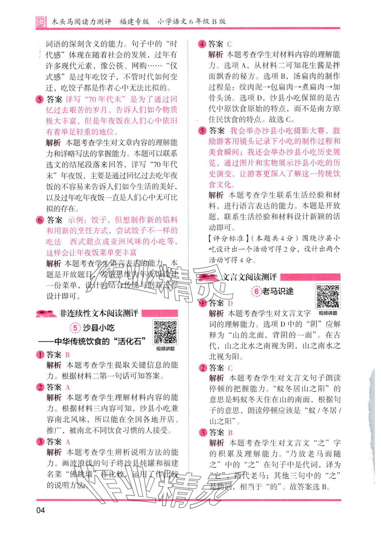 2025年木头马阅读力测评六年级语文人教版B版福建专版 参考答案第4页