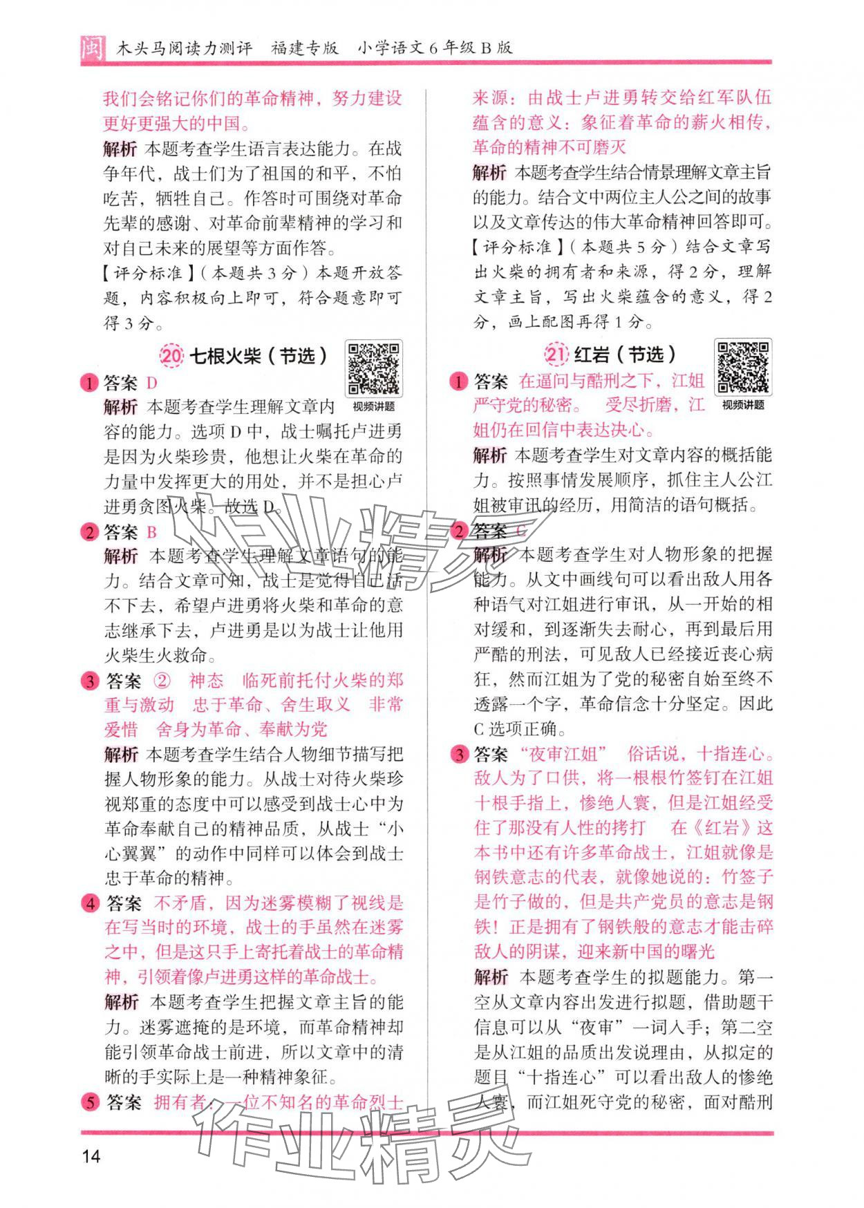 注:目前有些书本章节名称可能整理的还不是很完善,但都是按照顺序排列的,请同学们按照顺序仔细查找。练习册 2025年木头马阅读力测评六年级语文人教版B版福建专版 答案主要是用来给同学们做完题方便对答案用的,请勿直接抄袭。