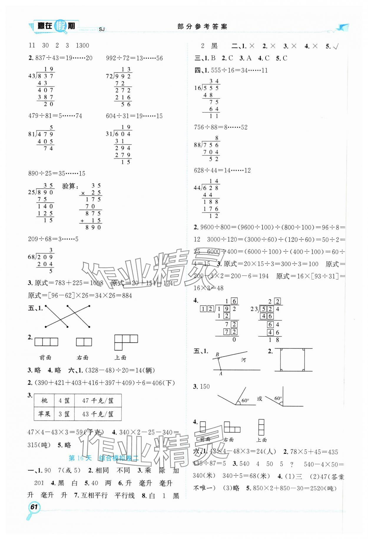 注:目前有些书本章节名称可能整理的还不是很完善,但都是按照顺序排列的,请同学们按照顺序仔细查找。练习册 2025年赢在假期期末加寒假四年级数学苏教版合肥工业大学出版社 答案主要是用来给同学们做完题方便对答案用的,请勿直接抄袭。