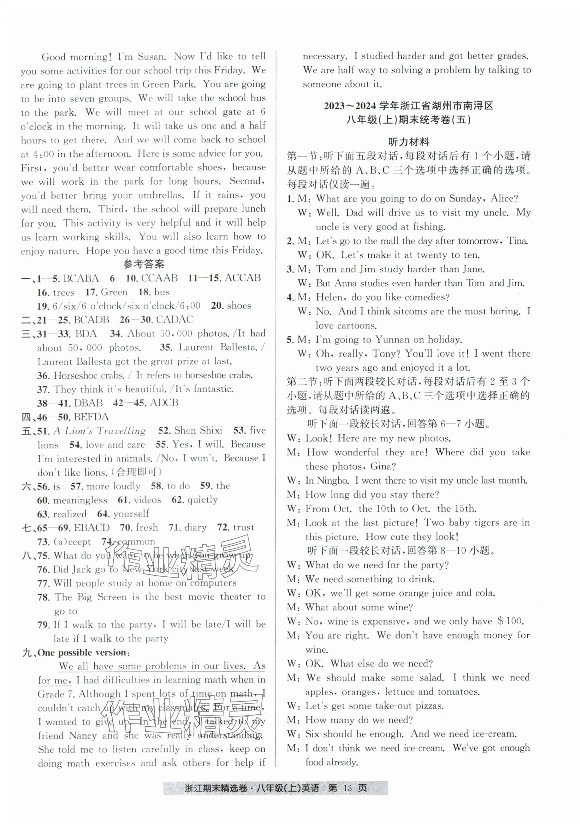 注:目前有些书本章节名称可能整理的还不是很完善,但都是按照顺序排列的,请同学们按照顺序仔细查找。练习册 2024年浙江期末精选卷八年级英语上册人教版 答案主要是用来给同学们做完题方便对答案用的,请勿直接抄袭。